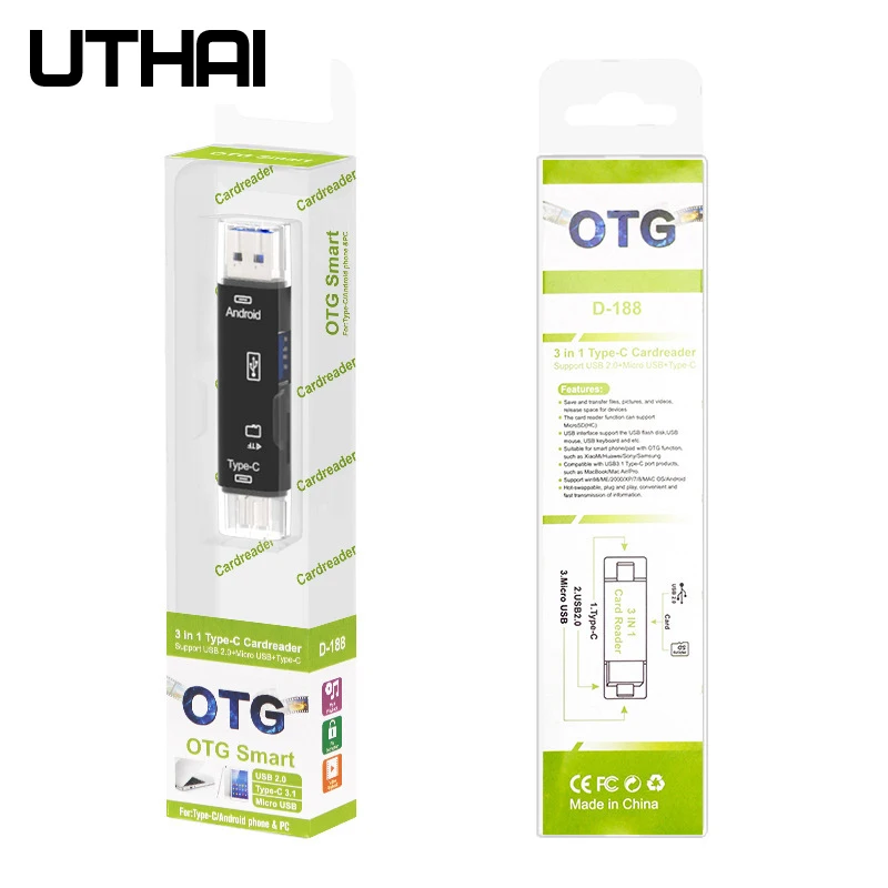 UTHAI C01 Type CMicroUSBUSB 3в1 OTG Кардридер высокоскоростной Универсальный OTG TFUSB для Android компьютера удлинитель адаптер