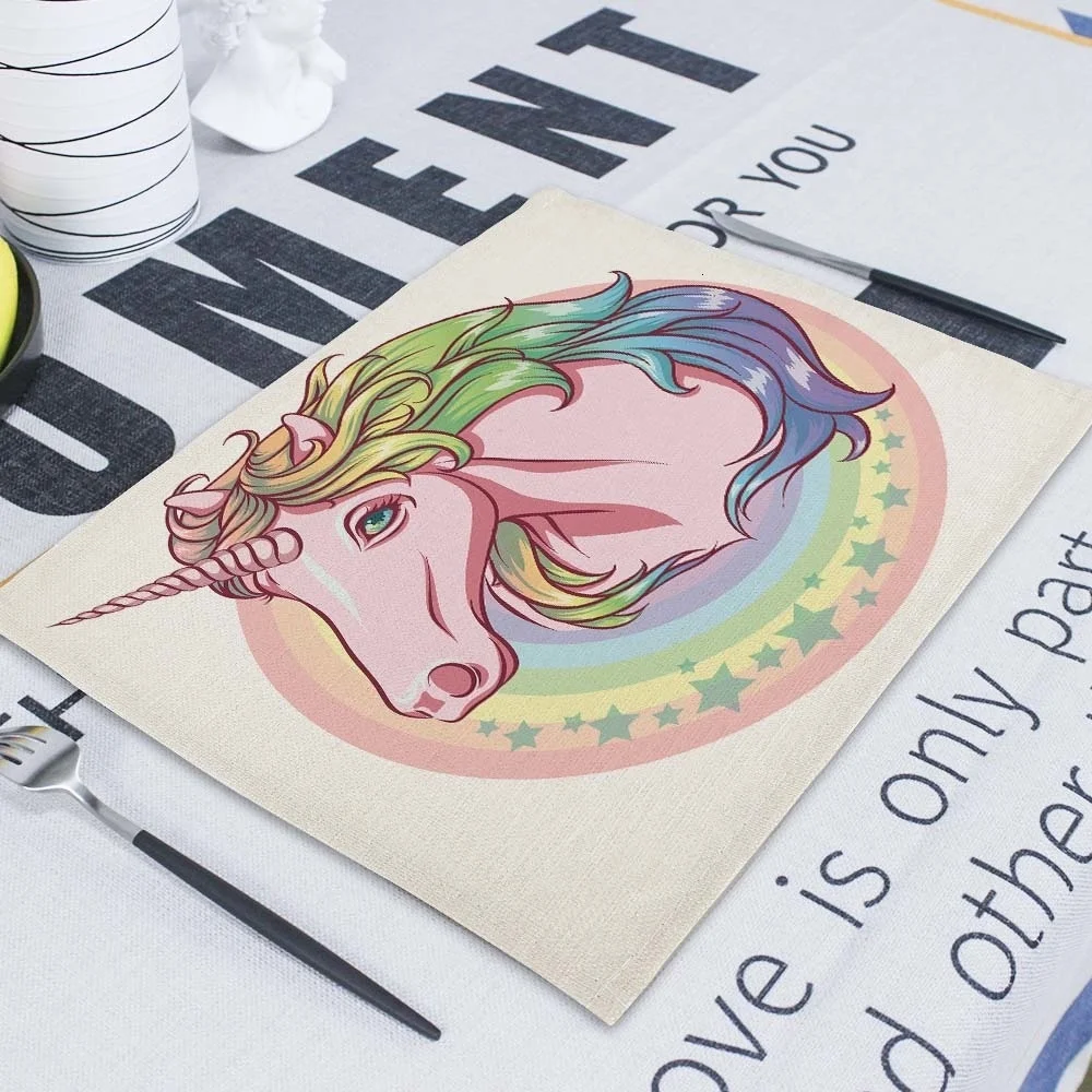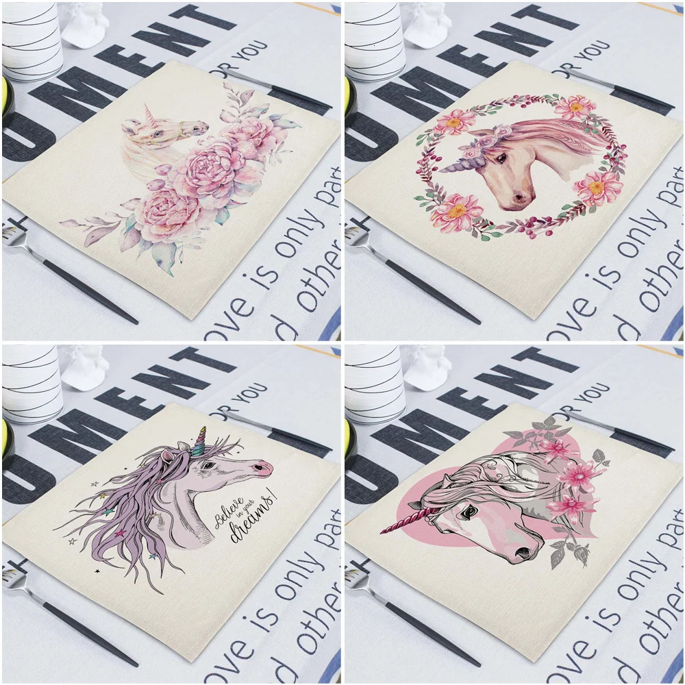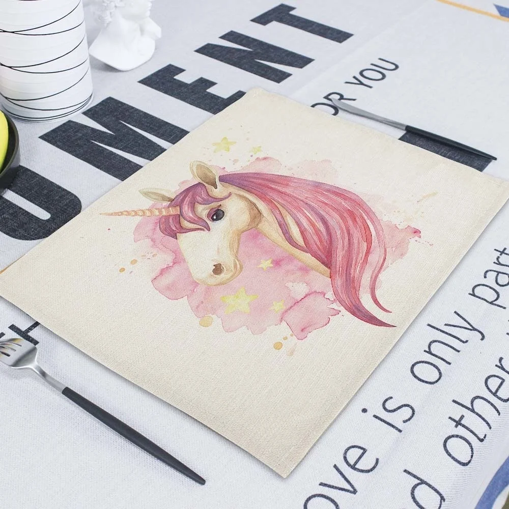 Милый Единорог, льняной Настольный коврик с милым мультяшным животным рисунком, домашние салфетки для детей, кухонные столовые коврики, салфетки