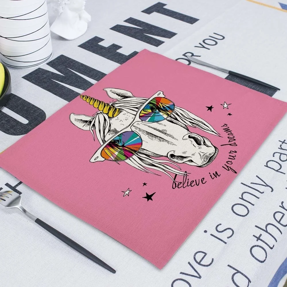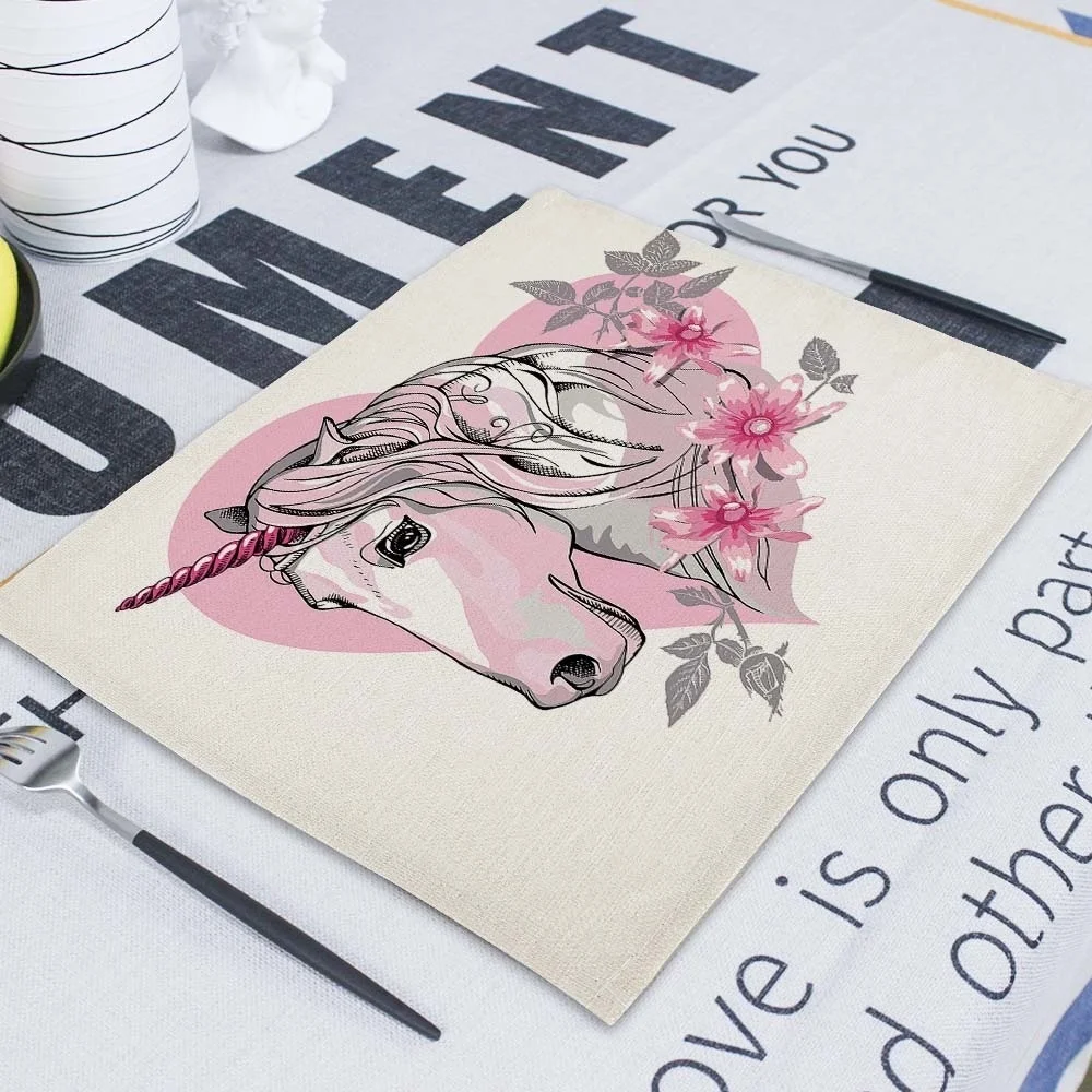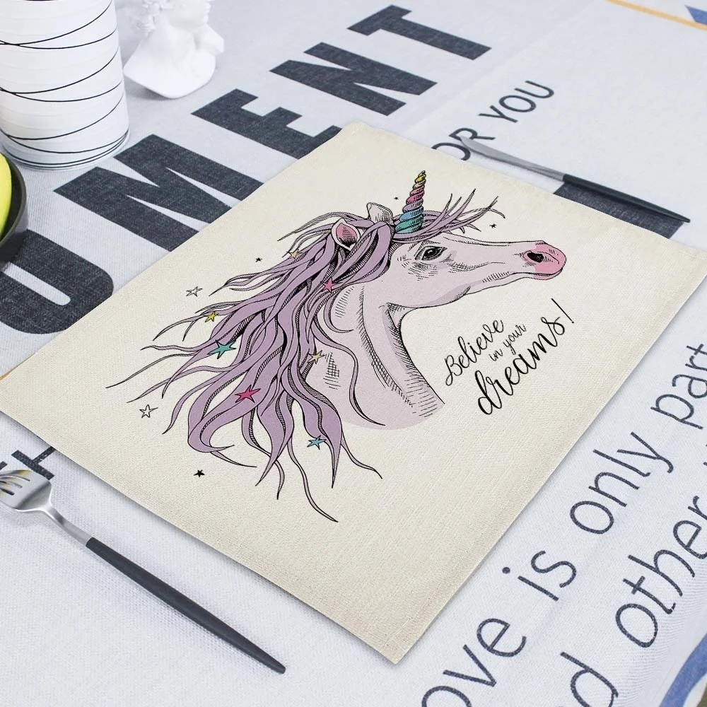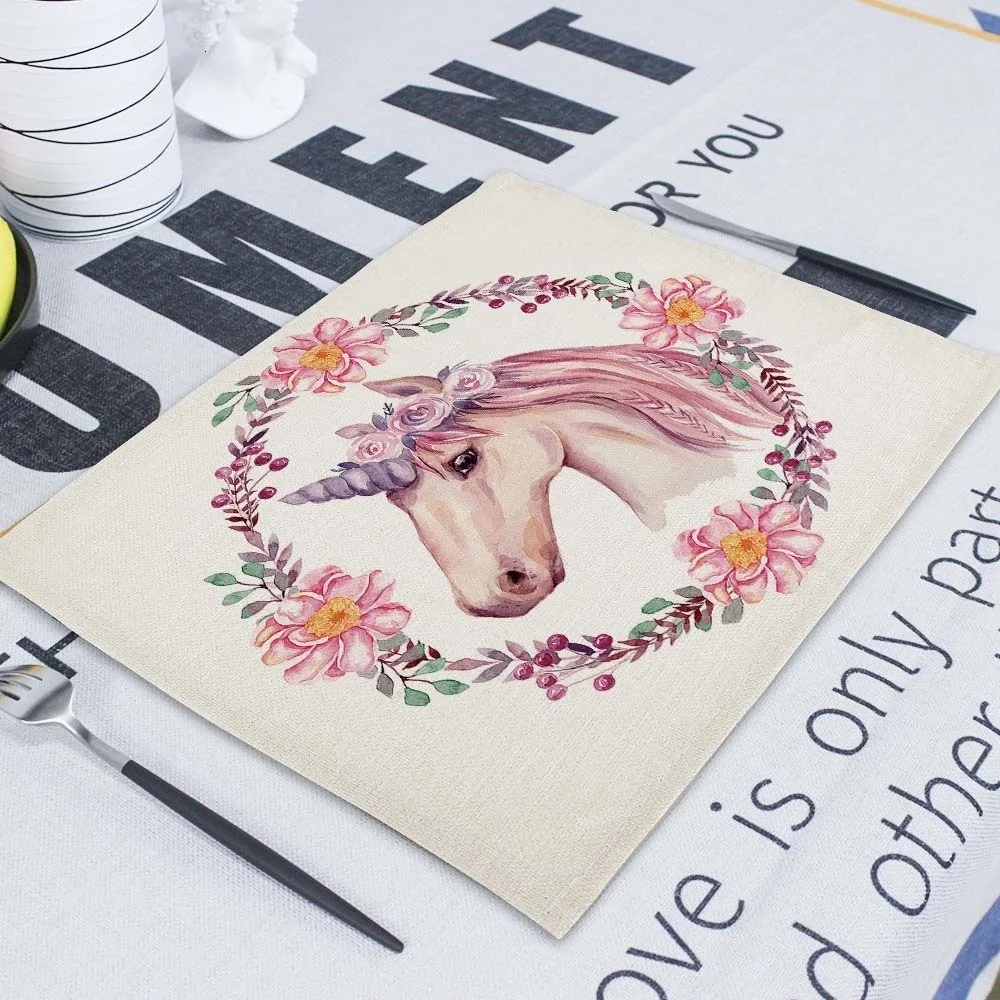 Милый Единорог, льняной Настольный коврик с милым мультяшным животным рисунком, домашние салфетки для детей, кухонные столовые коврики, салфетки