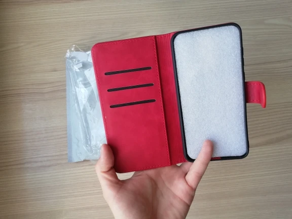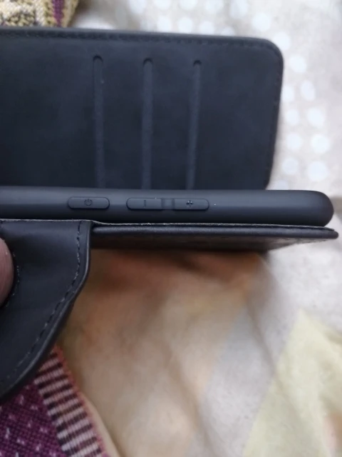 Кнопки чехла не соответствуют кнопкам телефона (не возможно заблокировать телефон). Вырезы под камеру и сканер отпечатка пальца сдвинуты относительно устройств на телефоне (не возможно воспользоваться сканером отпечатка пальцев). Подкладка кардхолдеров вываливается наружу.