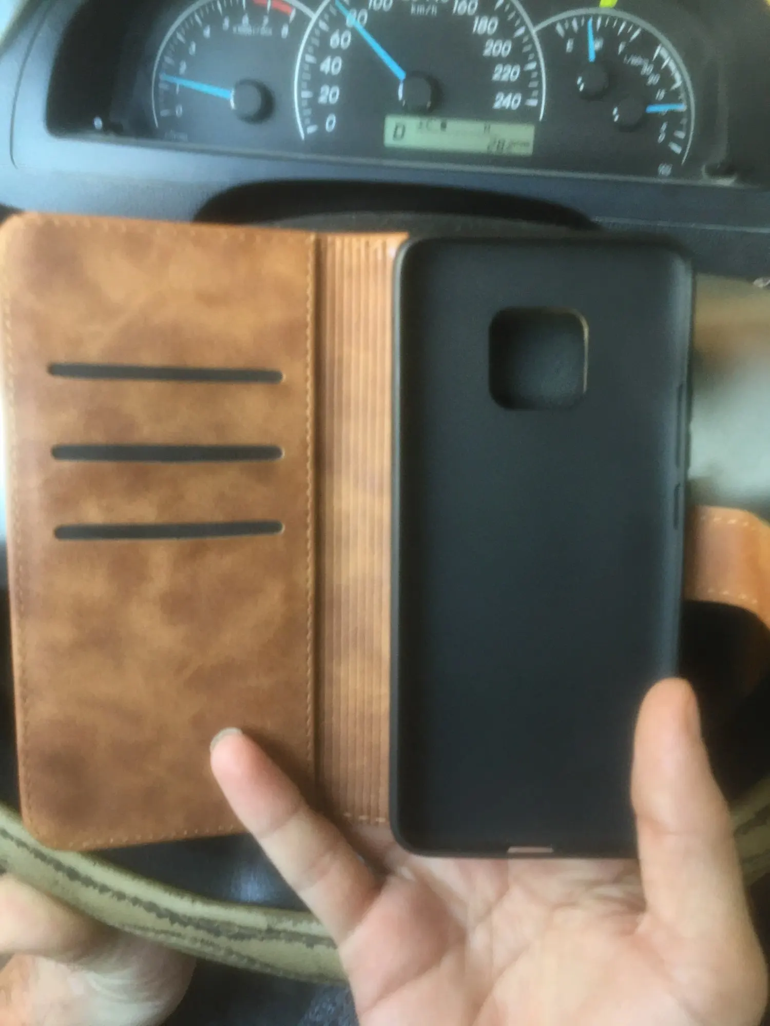 Отличный чехол. Хорошее качество. Внутри держатель мягкий силиконовый плотный. Есть отдельные кармашки для карт или документов. Покупкой довольна.