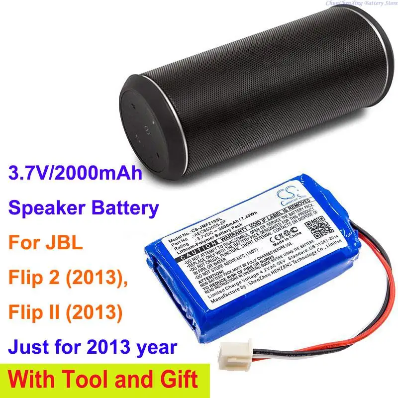 Cameron Sino 2000mAh Battery AEC653055-2P for JBL Flip 2 (2013), Flip II (2013),please check the connector is 3 wires or 5 wires