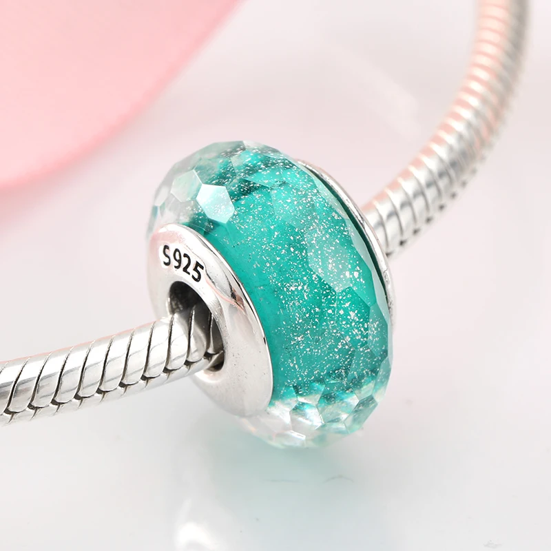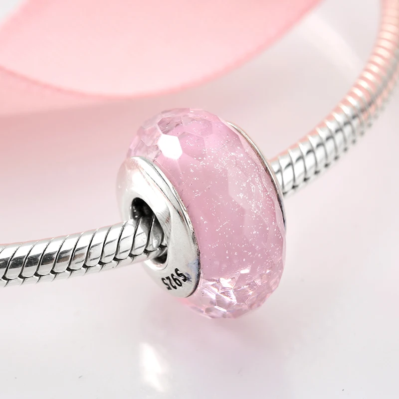 Бусины из муранского стекла, розовые, серебряные, 925 пробы