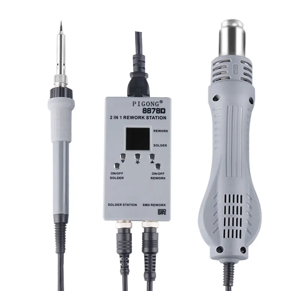 EU220V US110V 8878D двойная цифровая 2 в 1 SMD паяльная станция, воздуходувка горячего воздуха, сварка тепловой пушкой, инструмент для ремонта паяльника