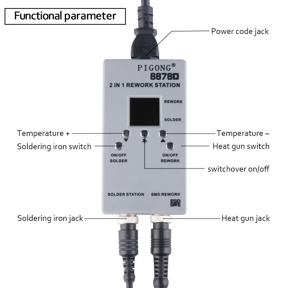 PJLSW 8878D ЕС США Двойной цифровой 2 в 1 SMD паяльная станция горячий воздух воздуходувка Сварка тепловой пушкой паяльник инструмент для ремонта