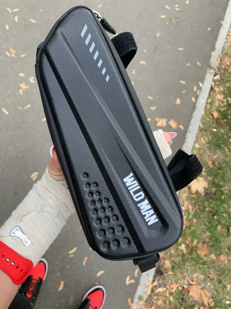 Очень крутая сумка! Качество на высоте! Отшита идеально, стежок к стежку! Запаха практически нет, если только сильно внюхаться)) тактильно тоже безумно приятная! Гравировка фирмы даже на собачках, что говорит о качестве товара! Сумка очень вместительная, помещается Айфон Max(как раз его высота) и остаётся масса места для инструментов и личных вещей! Вписалась в мою раму L превосходно и бутылка на своём месте, друг другу не мешают! Доставка до Киева 26 дней. Спасибо огромное продавцу за оперативность и превосходное качество! С удовольствием буду рекомендовать друзьям!