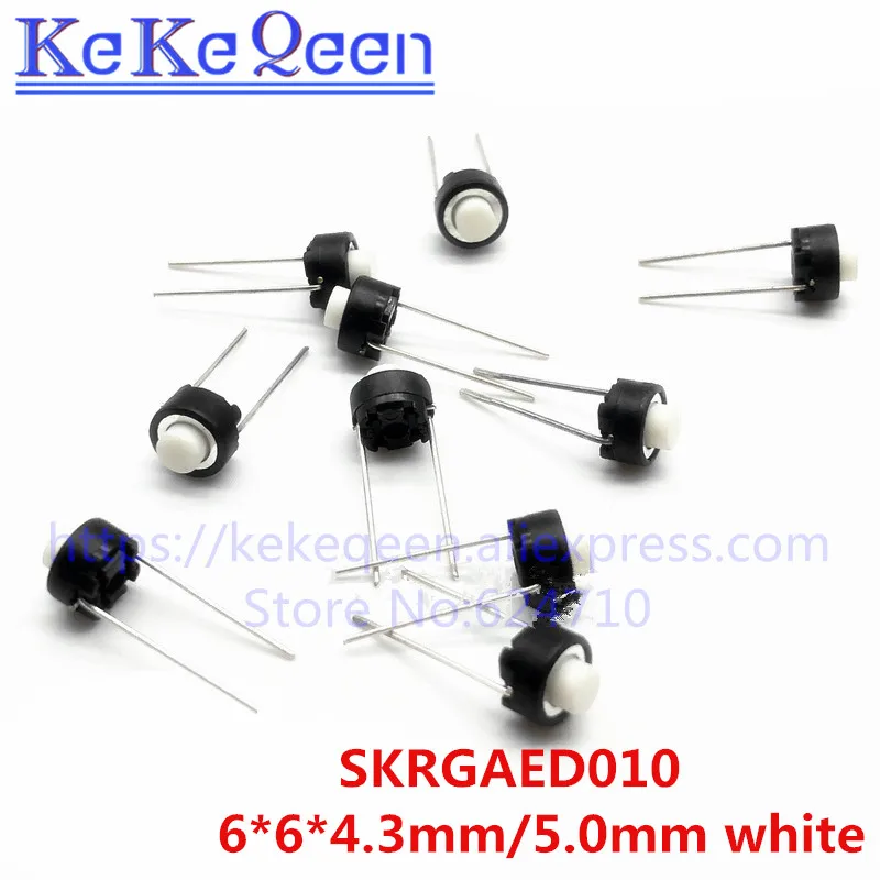 100 шт., тактовый переключатель, SKRGAED010, ALPS, 6*6*4,36*6*5, белый, черный, сенсорный переключатель, 6*6*4,3 мм6*6*5 мм, микропереключатель тактильная Кнопка DIP