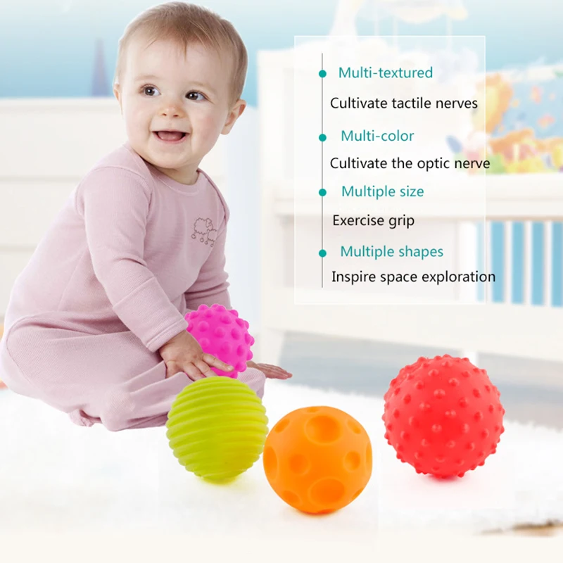 Резиновые текстурированные детские игрушки, мячики, набор игрушек с несколькими тактильными мячиками, развивающийся массаж, сенсорный мяч, мяч для рук