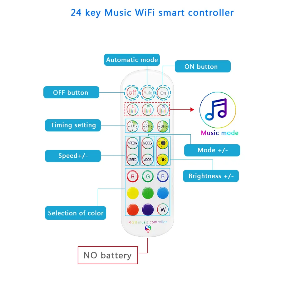 Светодиодная лента + 24key музыкальный wifi контроллер * DC12V источник питания