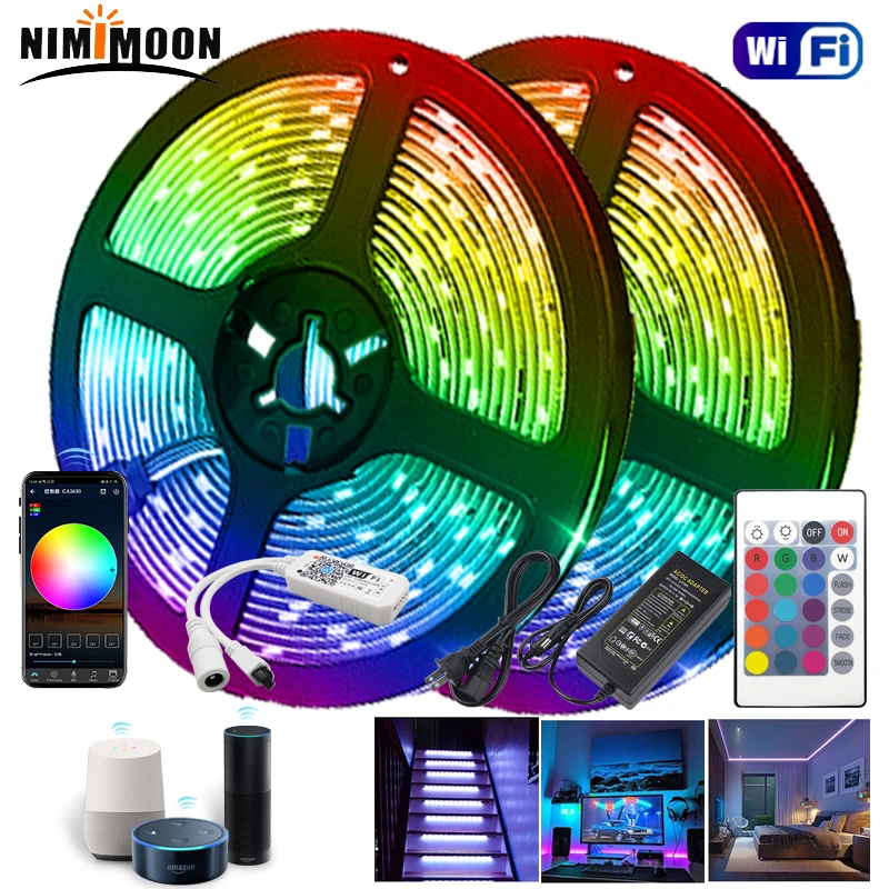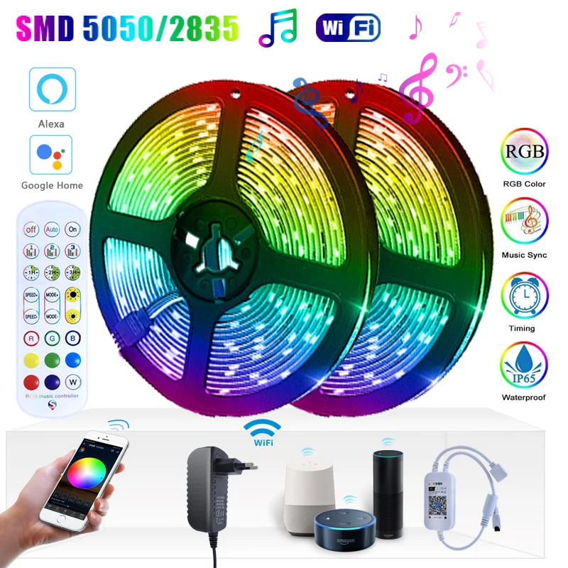WiFi умный светодиодный ленточный светильник s совместим с Alexa Google Home RGB 2835 5050 5 м 10 м 15 м управление приложением синхронизация музыки светодиодный светильник для спальни
