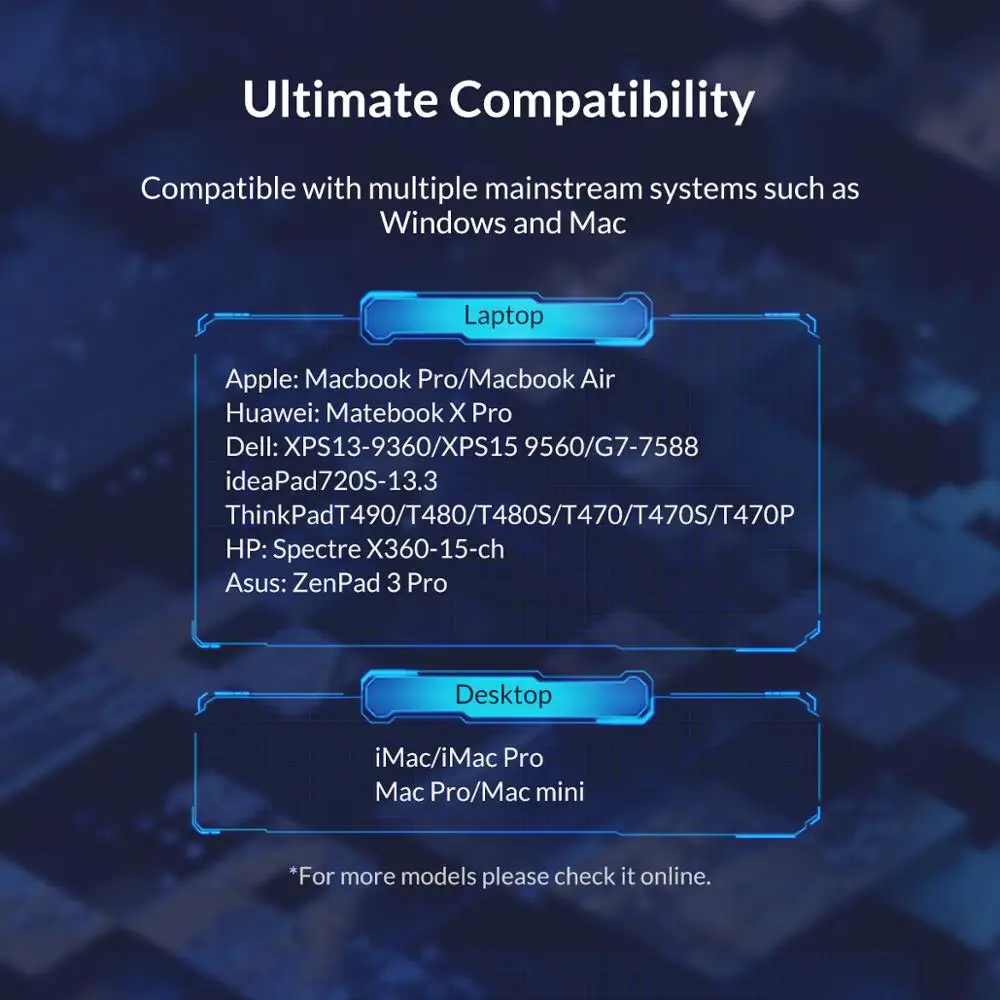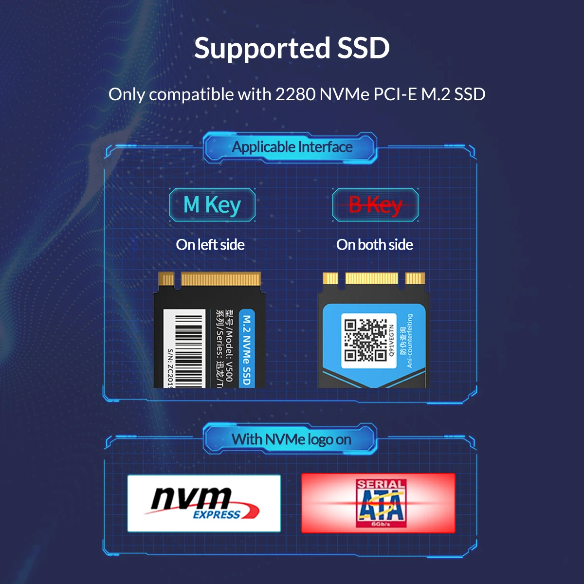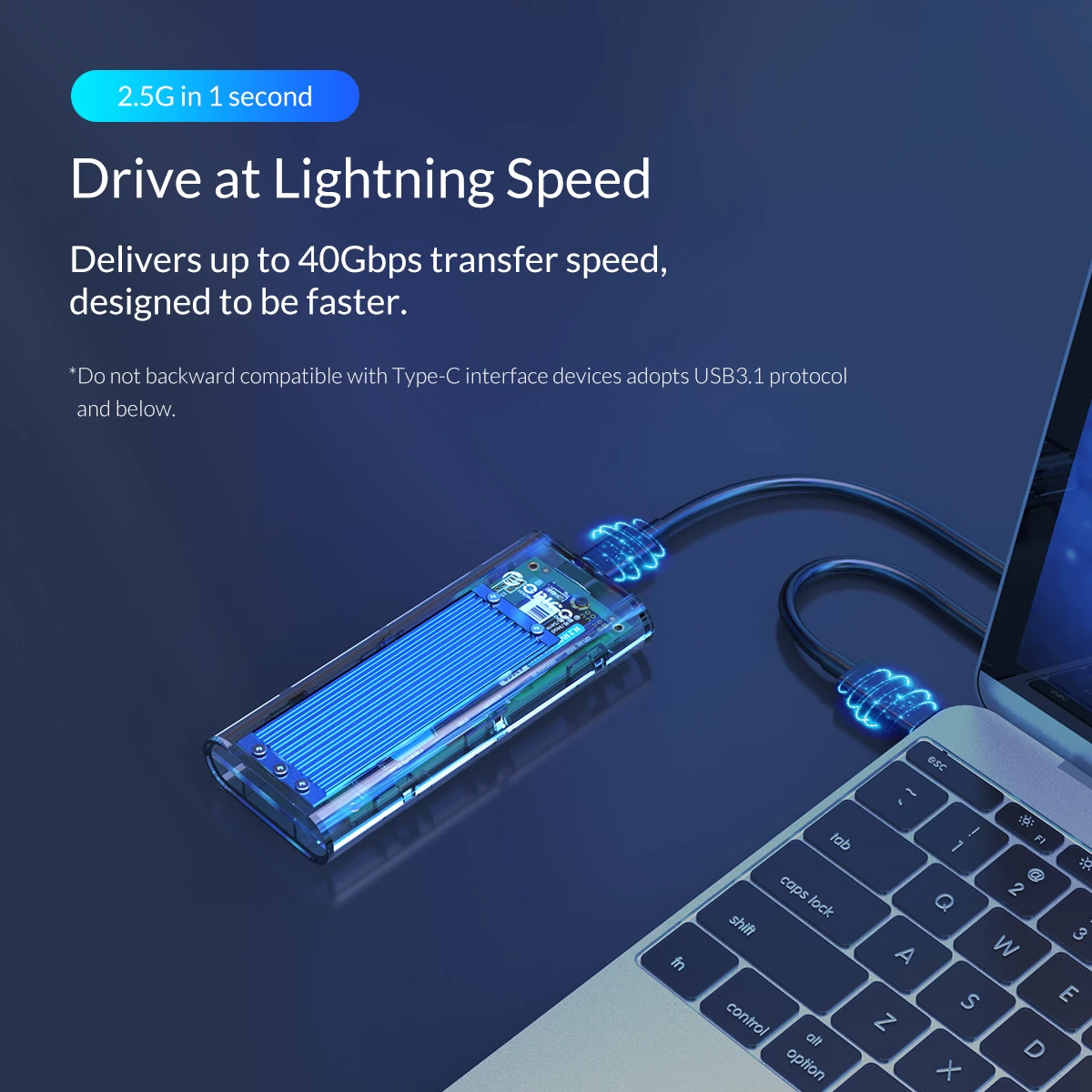ORICO 40 Гбитс M.2 NVME SSD корпус 2 ТБ прозрачный USB C SSD чехол с 40 Гбитс C кабель для Mac Windows
