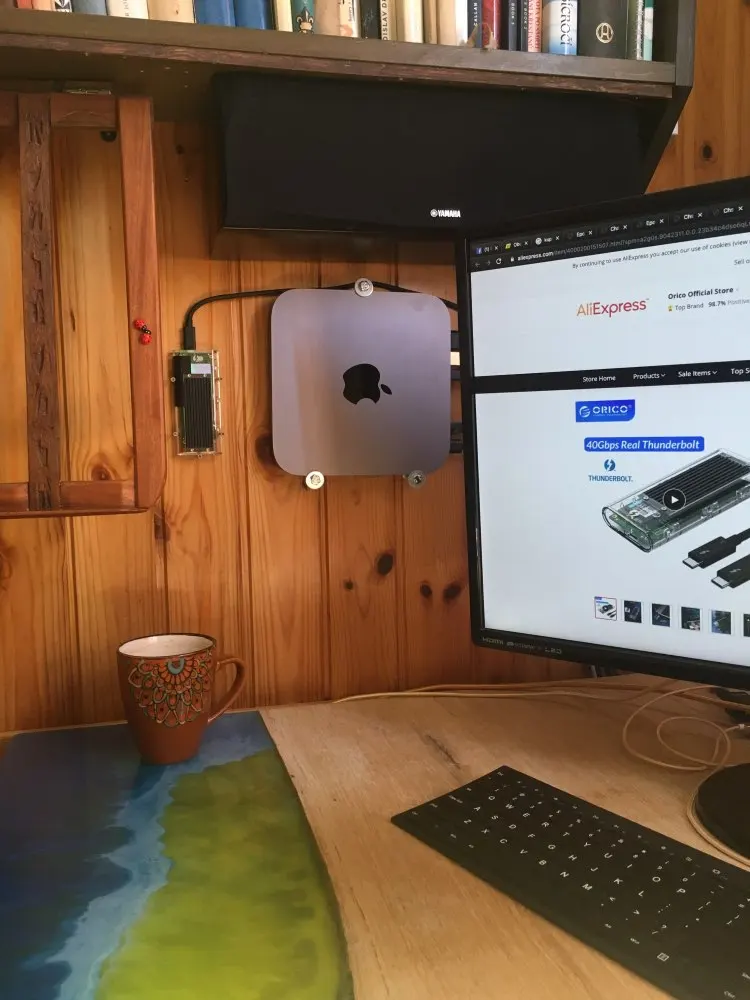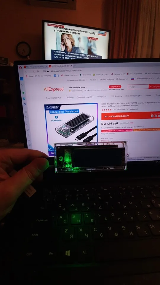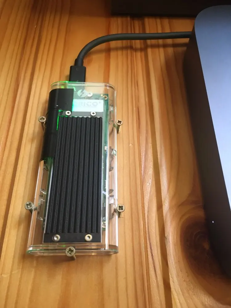 Потрясающе! Быстрая доставка! Корпус Thunderbolt идеален! Обратите внимание, что зеленые светодиодные лампы очень яркие. Радиатор выполняет свою работу. NVME SSD работает под управлением хо!