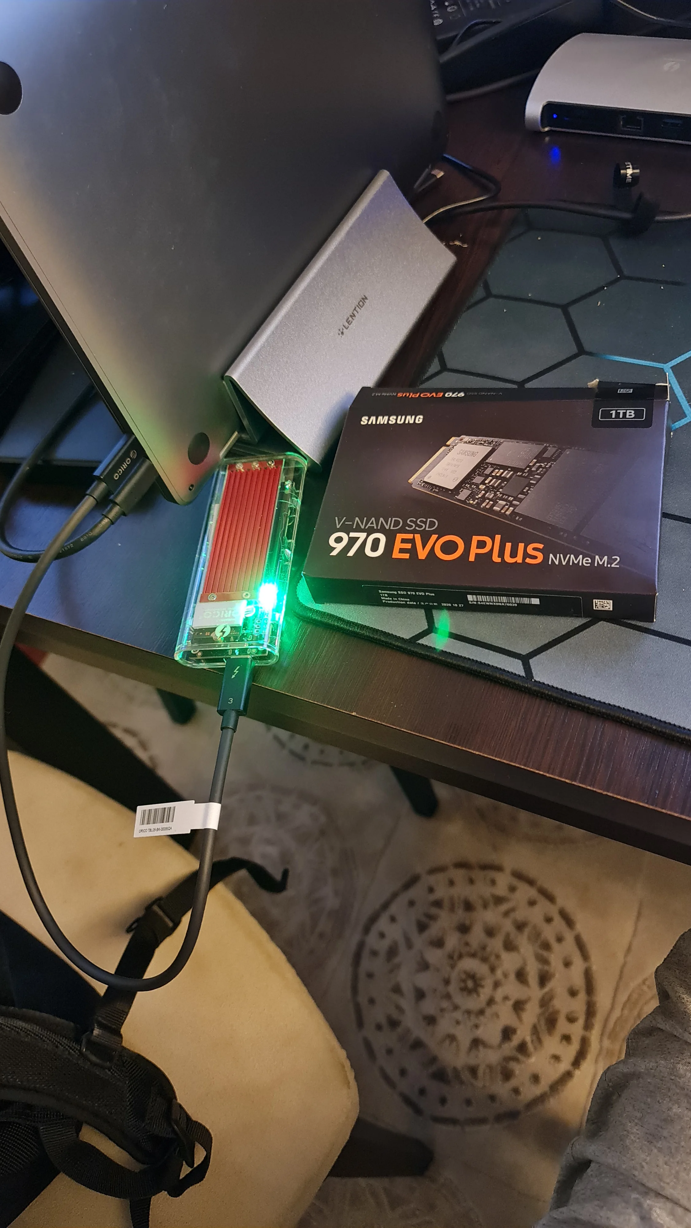 Мне нравится эта компания, они всегда являются быстрым и хорошим решением, но у меня есть только небольшая проблема с диском Samsung 970eveplus nvme2 ТБ, и я тестирую этот диск с моим MacBook pro 13 m1, но тест скорости не очень доволен. Скорость записи около 800 МБ, скорость чтения около 2500 МБ, я жду как минимум оба из них 3000 МБ вокруг, потому что это Ева sped 3500, если вы поставляете непосредственно в обычный ПК. Вы также можете увидеть на моих фотографиях детали. Пожалуйста, кто-то, объясните мне, почему эта скорость, что я сделал неправильно?