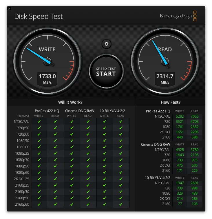 Ausgezeichnetees Thunderbolt 3-Gehäuse. Diese Geschwindigkeit (Foto) habe ich mit zwei Modellen anderer Hersteler bei weitem nicht erreicht. Bedingungen bei mir: Samsung 970 EVO 2TB, iMac2017, TB3-Anschluss. Sehr gute Lieferzeit nach Deutschland: 7 Tage. ------ Excellent Thunderbolt 3 case. I have not reached this speed (photo) by far with two models from other manufacturers. Conditions for me: Samsung 970 EVO 2TB, iMac2017, TB3 port. Very good delivery time to Germany: 7 days. ------