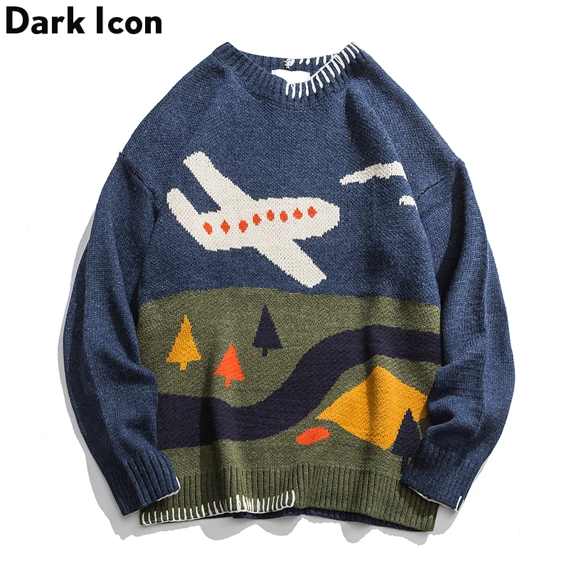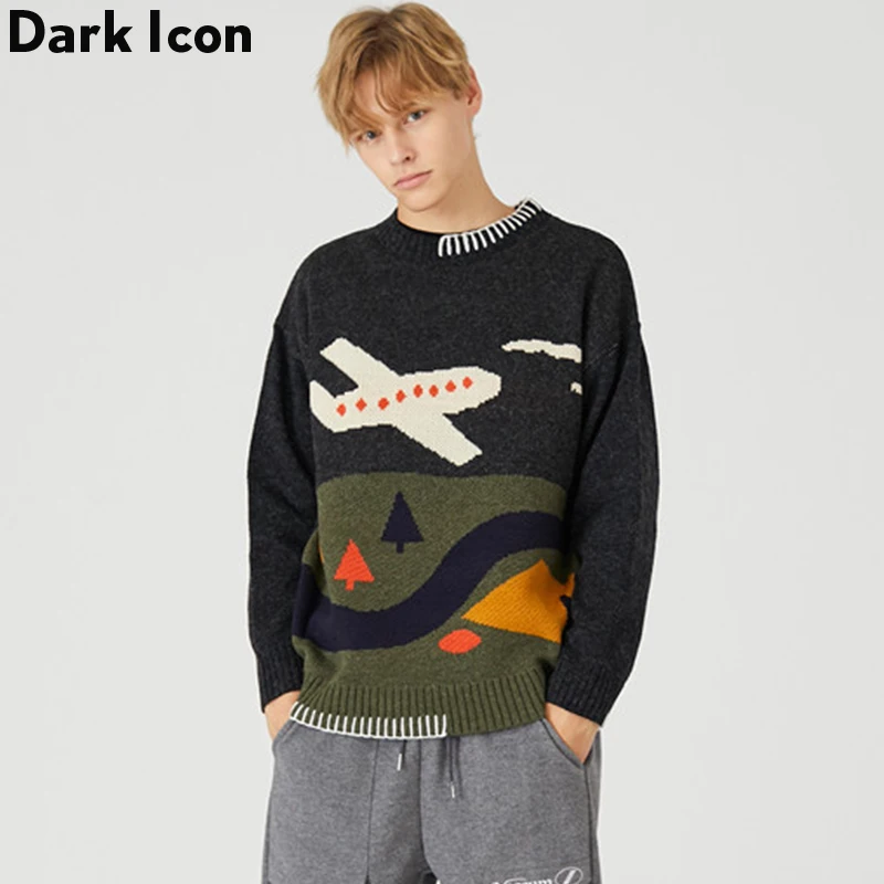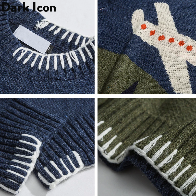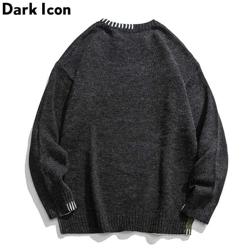 Пуловер Dark Icon с круглым вырезом, мужской зимний свитер с принтом, свитеры оверсайз в стиле хип-хоп, мужские шерстяные блузки, свитер синегозеленого цвета