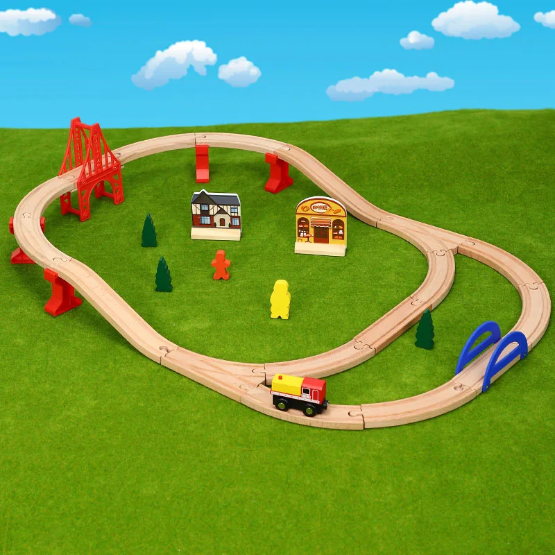 в набор только в ходит только конструкции дороги а вот заместо поезда машинка одна из дерева,и это сильно разтроило