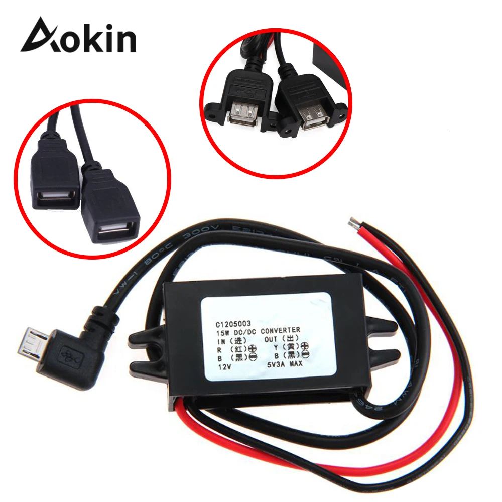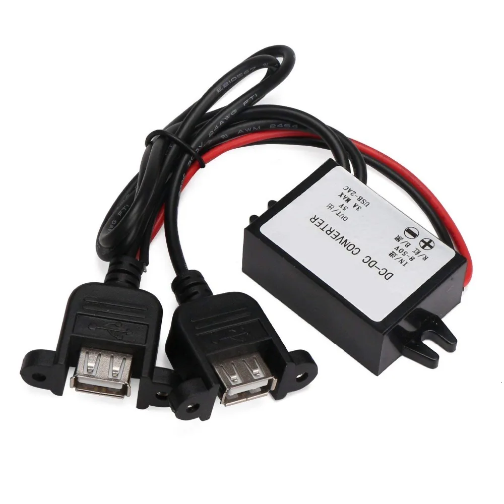 Адаптер питания для мотоцикла, 2 USB-порта постоянного тока 12 В до 5 В 3 а, с фиксированным преобразователем Micro usb