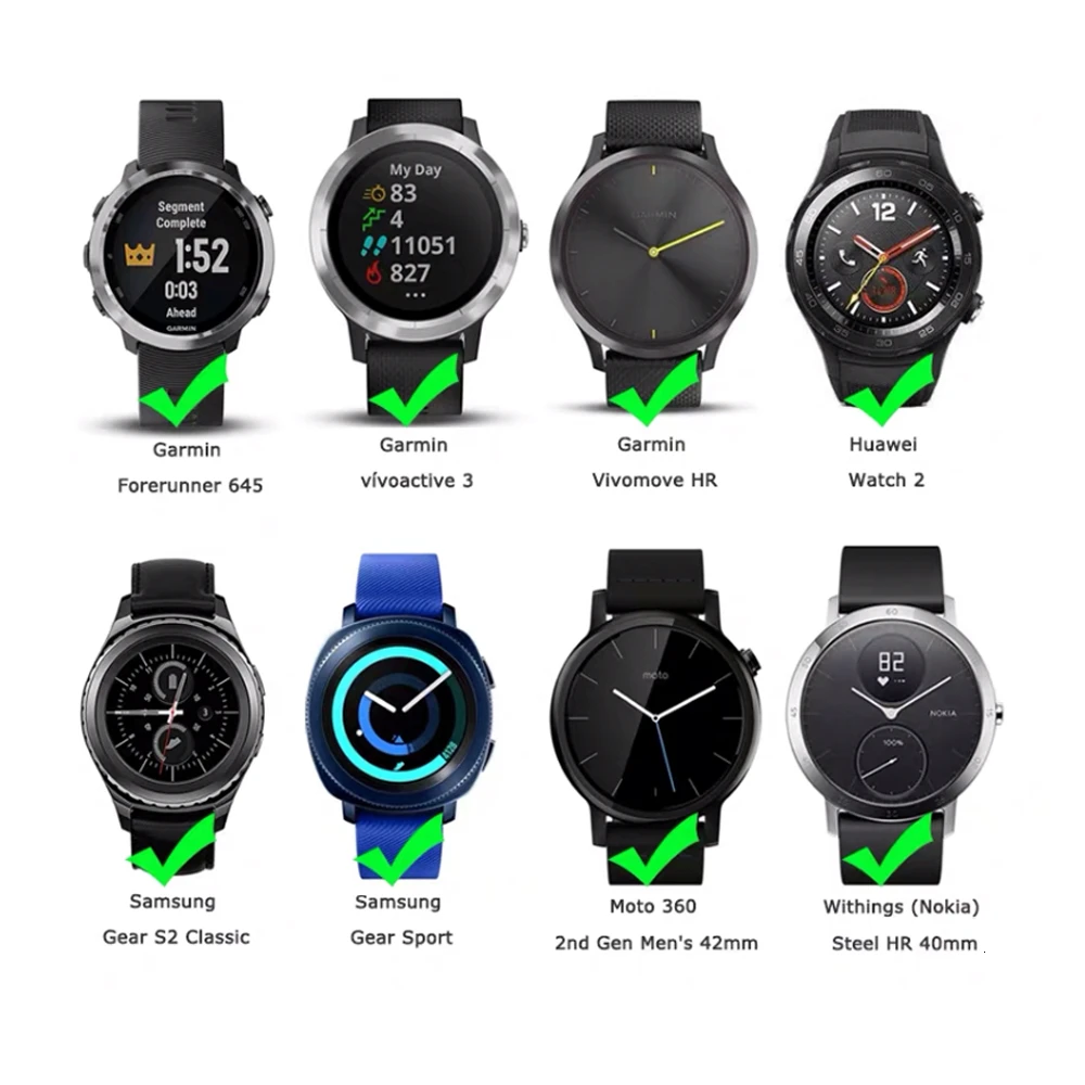 【Применение】: Персонализированные ваши Garmin Vivoactive 3/ Garmin Vivomove HR/ Ticwatch 2/ Moto 360 2 мужские 42 мм/Samsung Gear S2 классические Смарт-часы с этой изысканной заменяемой наручной лентой. Сопоставим с оригинальными часами Garmin. Умные часы в комплект не входят.
