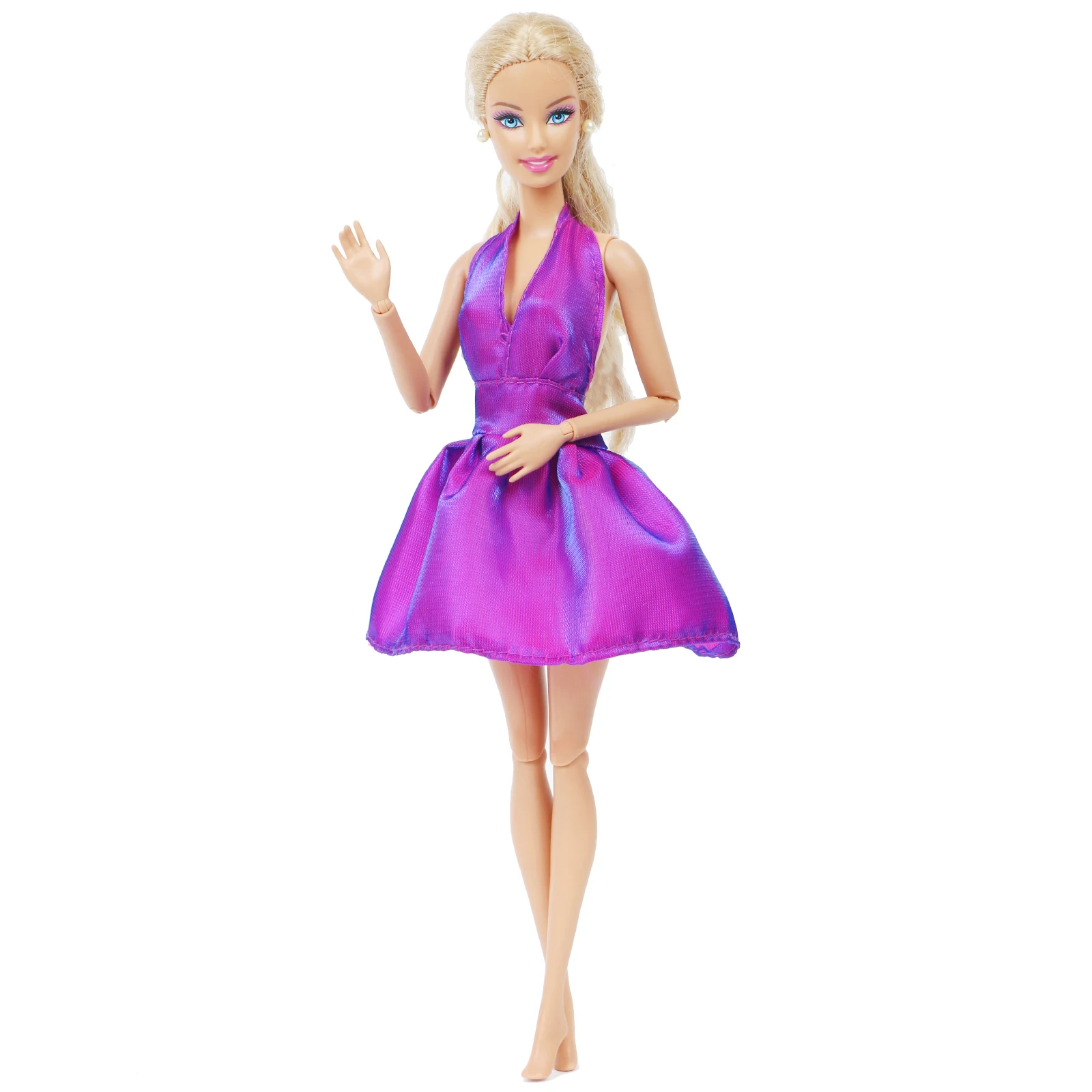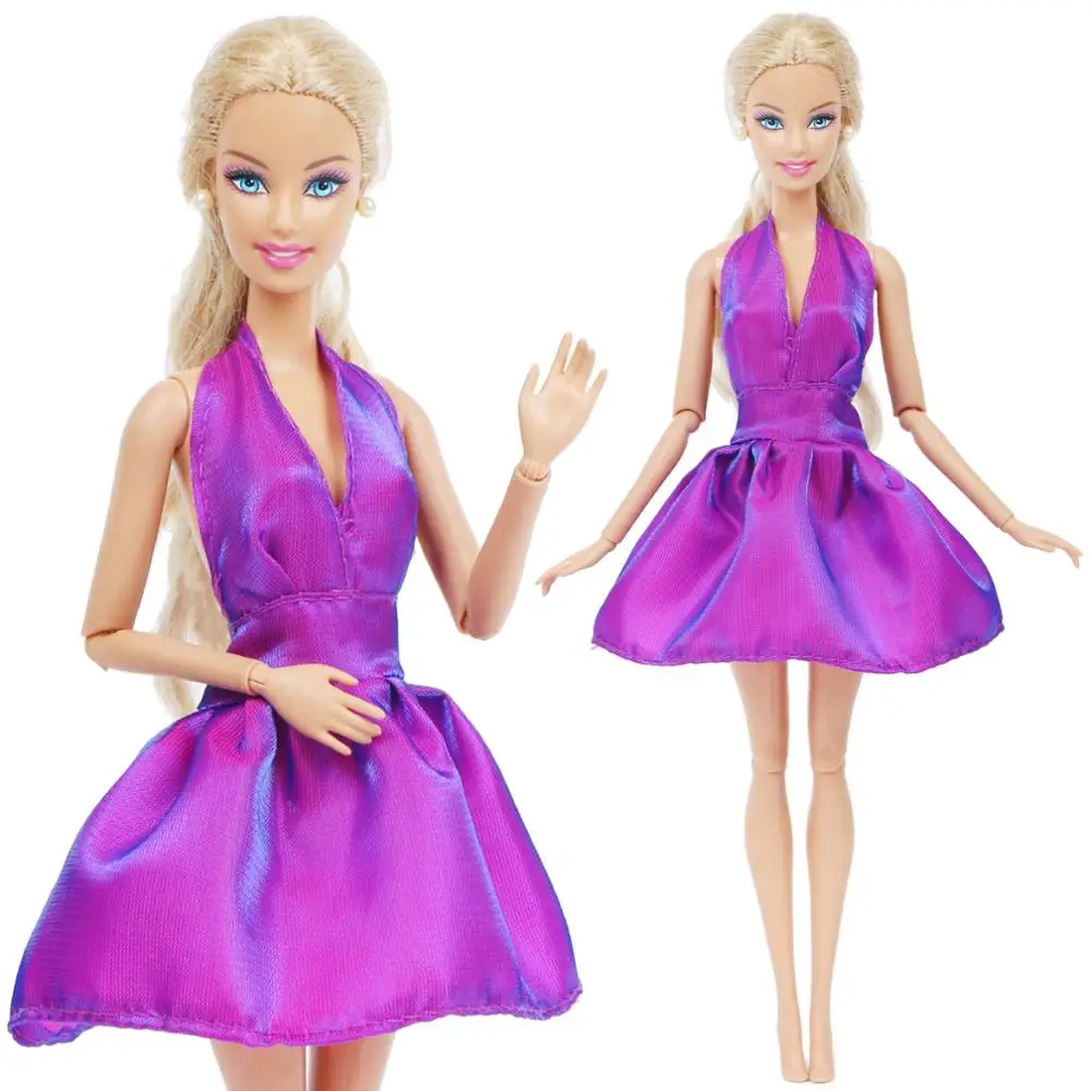 Модное фиолетовое Короткое мини-платье с V-образным вырезом, сексуальное платье, вечерняя юбка вечерние Одежда для кукольного домика Барби, аксессуары для кукол, игрушка