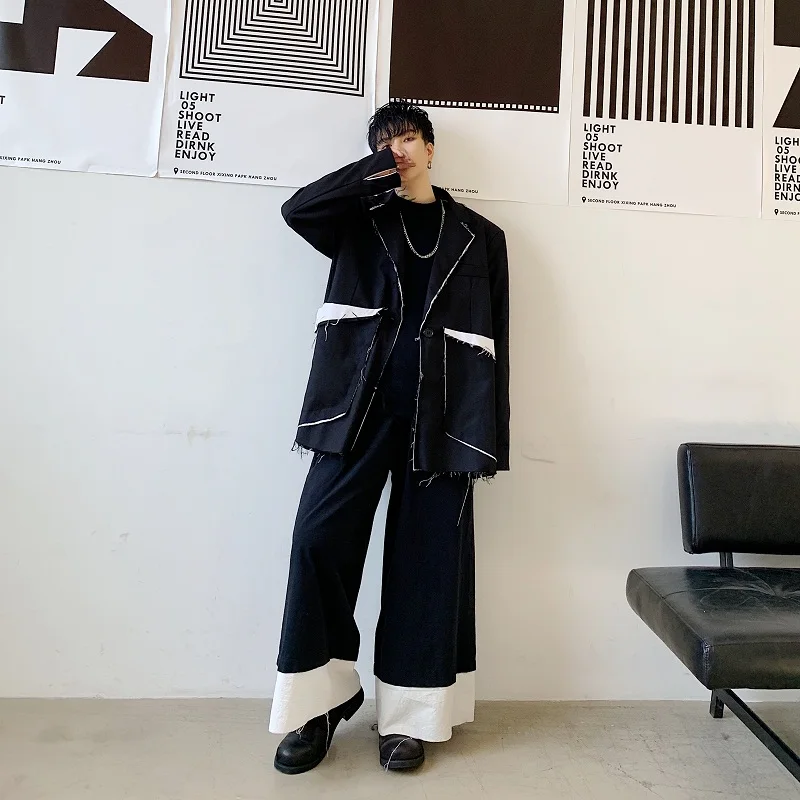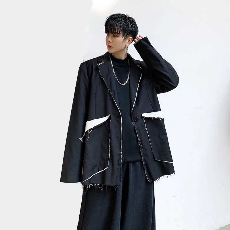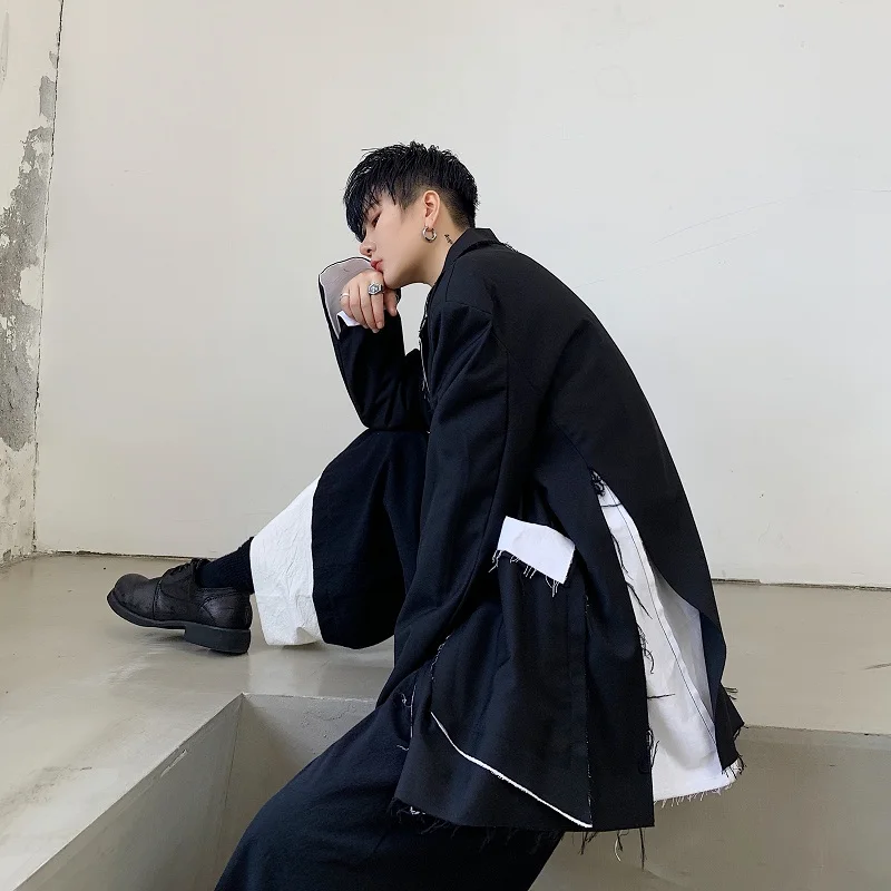 Для мужчин Винтаж Япония в уличном стиле, в стиле панк, готика, в стиле хип-хоп свободные Повседневное пиджак мужской щель сплайсинг, верхняя одежда, пальто