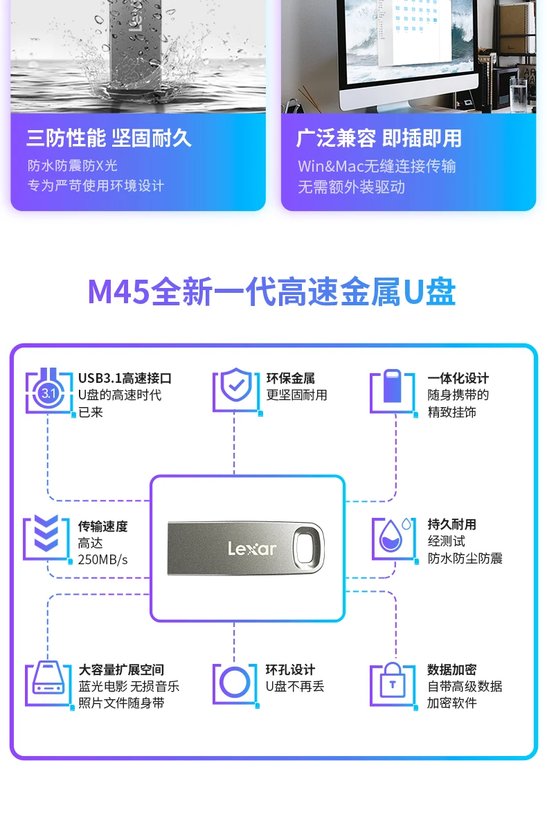 USB-флеш-накопитель Lexar M45, металлическая флешка, 32 ГБ, 64 ГБ, ...