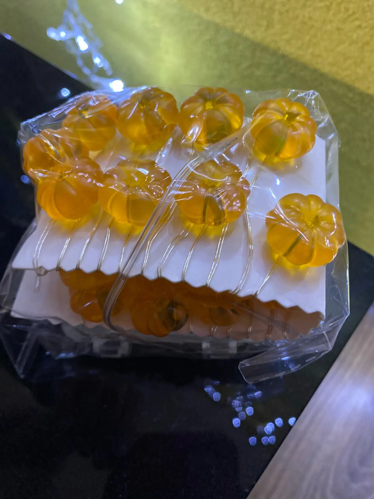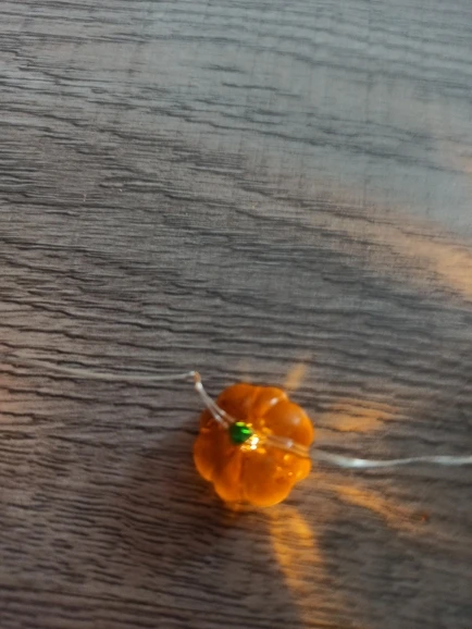 гирлянда понравилась, но не ожидала,что тыковки висят не на пластиковом проводе, а на проволоке. она кажется достаточно хрупкой. доставка была очень быстрой.