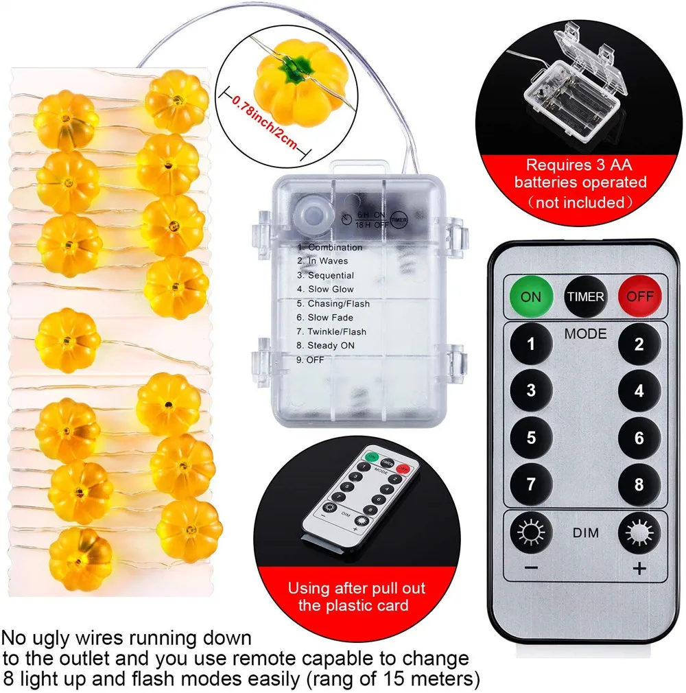 Гирлянда-тыква 3 м с пультом дистанционного управления, 8 режимов, 30 светодиодный