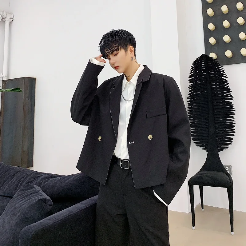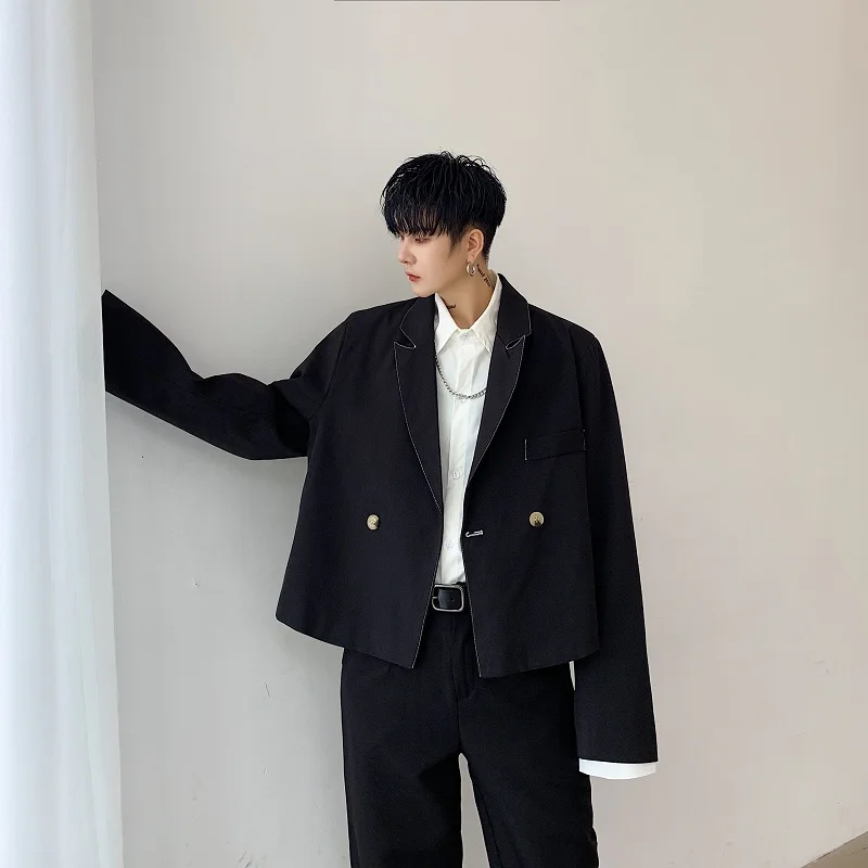 Пиджак мужской короткий Повседневный свободного покроя, винтажный пиджак в стиле хип-хоп, уличная одежда в японском стиле, готический Блейзер, верхняя одежда