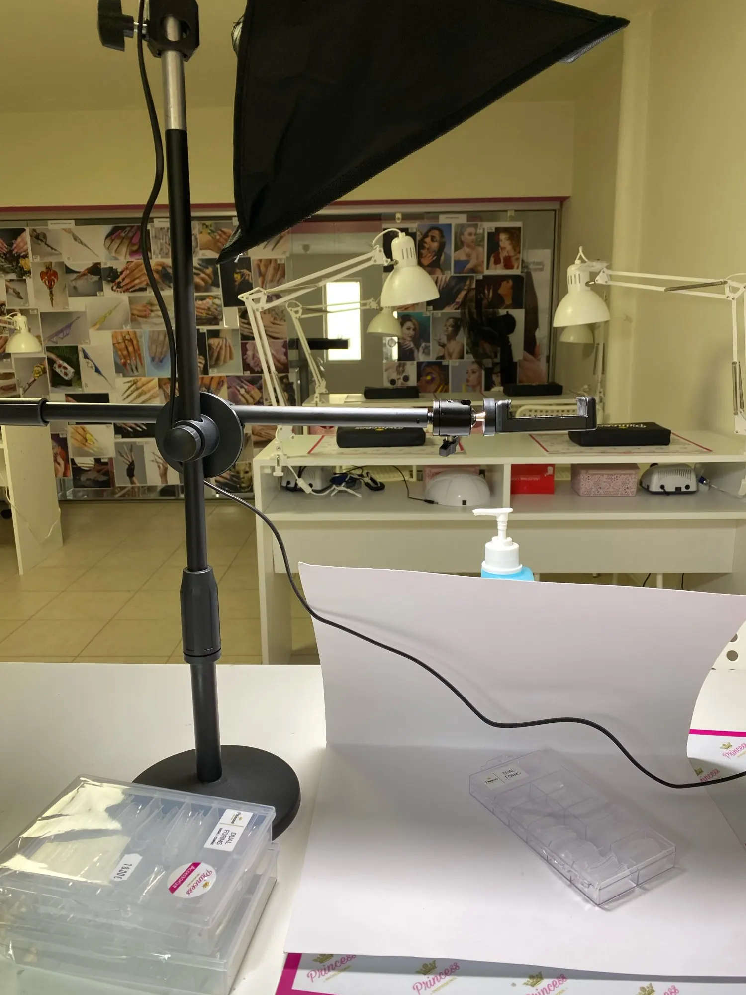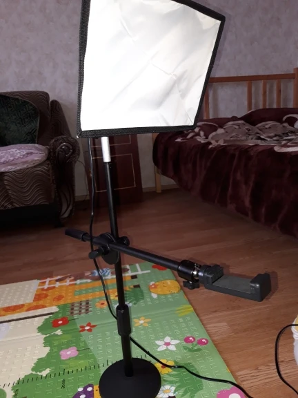 Комплект 3:Настольный кронштейн Подставка с стрелой + шаровой головкой + зажим для телефона + серебряные аксессуары + держатель лампы + светодиодный светильник 35 Вт + софтбокс с отражателем 20*30 см
