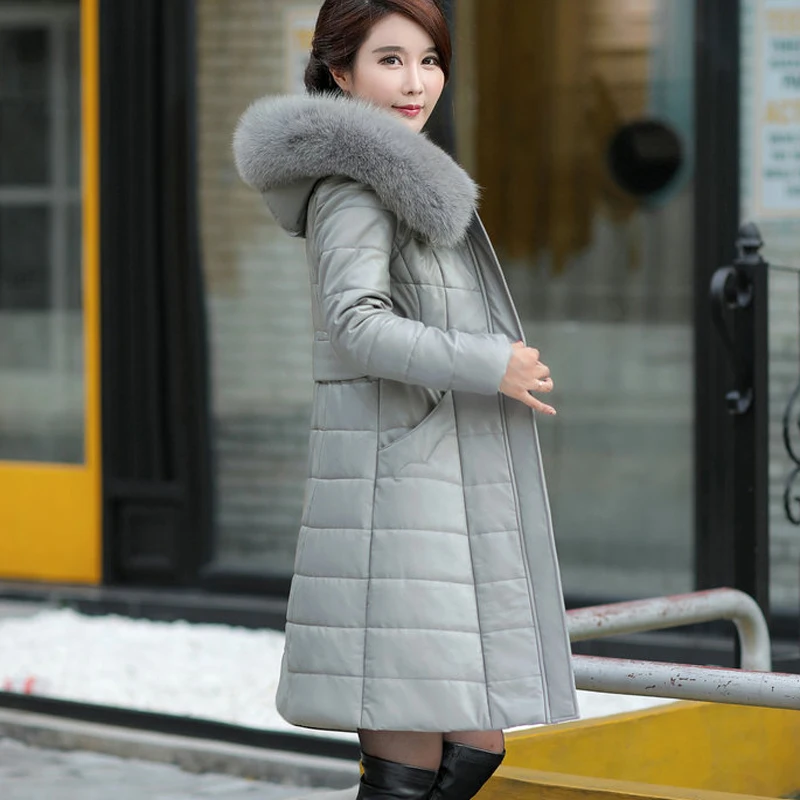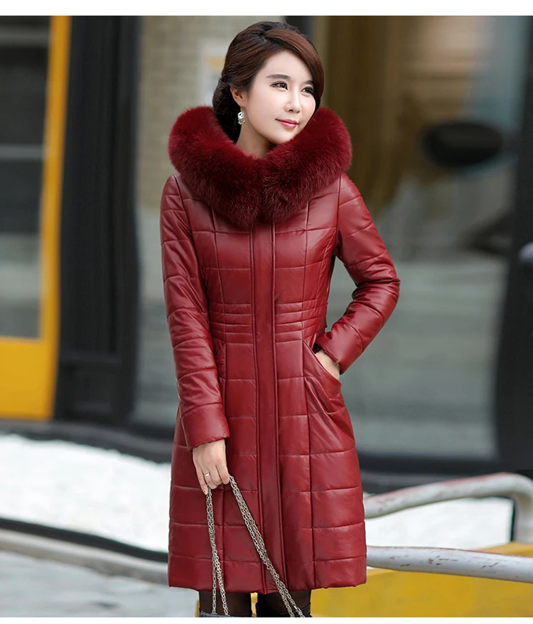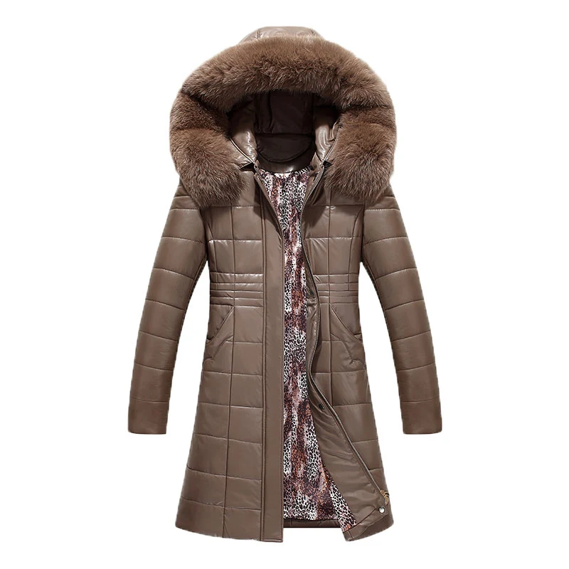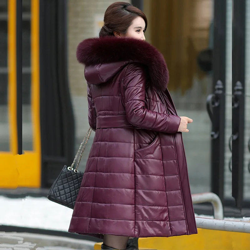 Женское Длинное Овчина кожа Пальто Зима 2022 Мамы Овчины Куртки Утепленная Теплая С Мех капюшоном Куртка Верхняя Одежда для Женщин Большие размеры L-8XL
