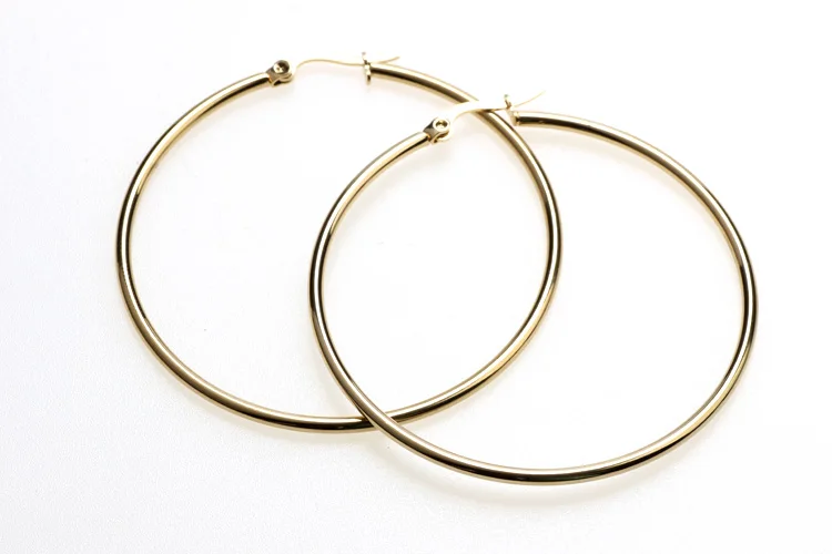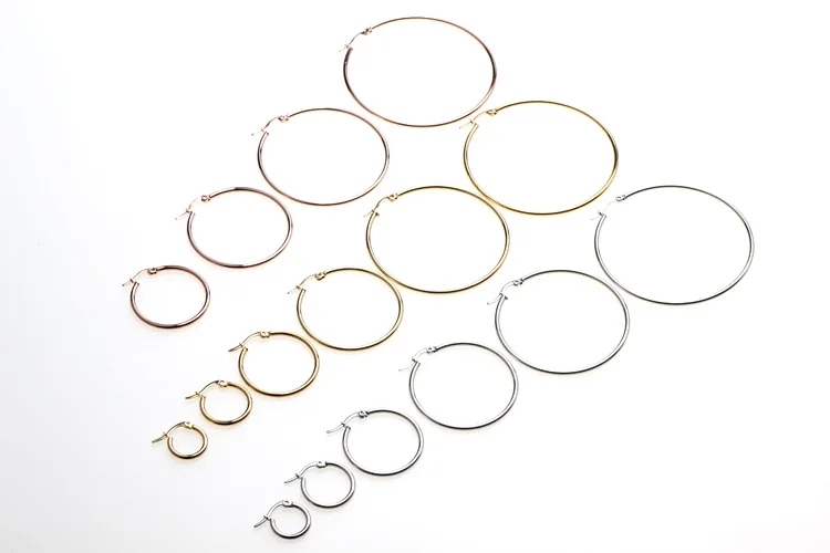 Бесплатная доставка, женские большие круглые серьги разных размеров, модные ювелирные изделия из нержавеющей стали золотого цветарозового золотадля девушек