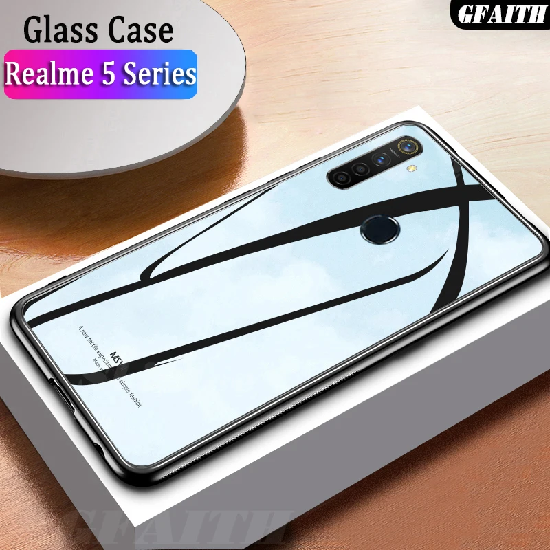 GFAITH для Realme 5 Pro Стекло чехол закаленное с мягкой ударостойкая рамка задняя крышка чехол для OPPO Realme 5 чехол s