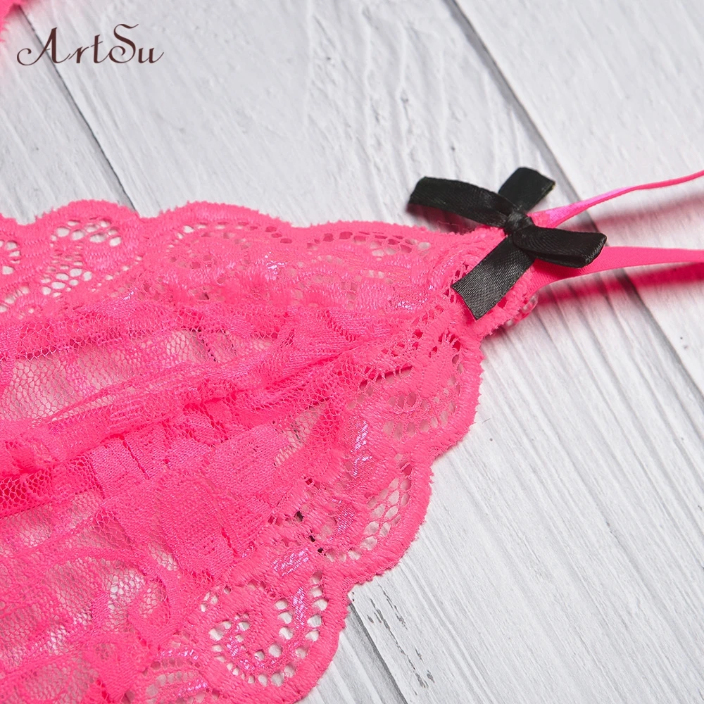 ArtSu Сексуальное Кружевное боди для женщин с цветочной вышивкой Розовые боди перспективное сексуальное боди Тедди комбинезон ASJU60429