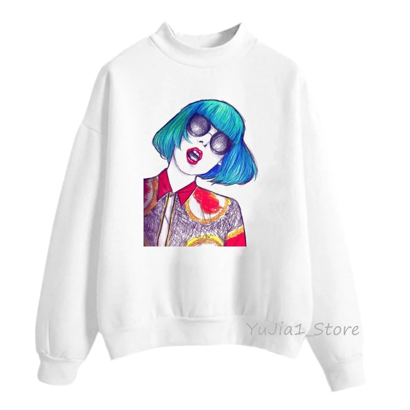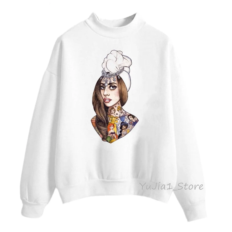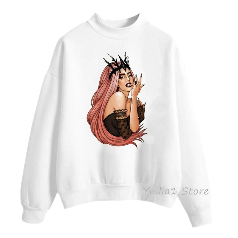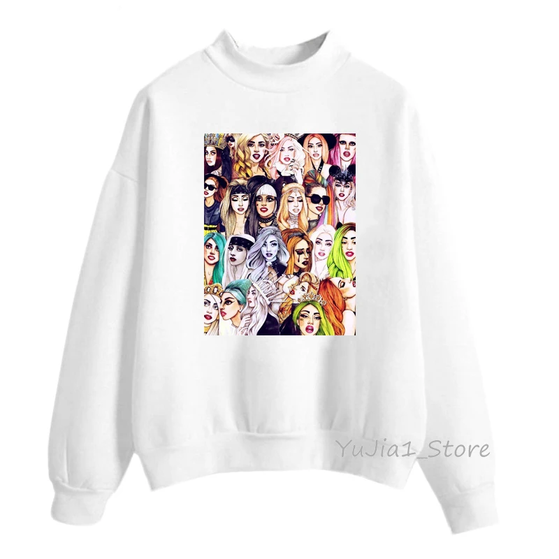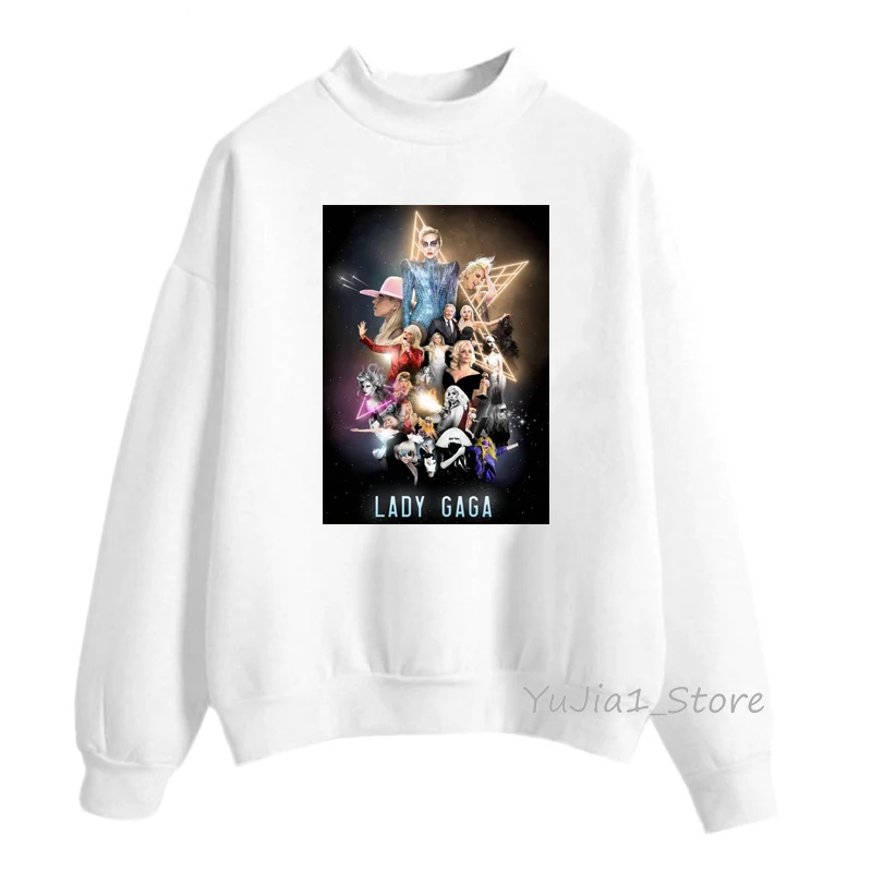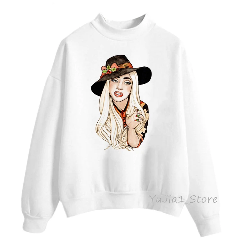 Женская толстовка с капюшоном lady gaga, белая толстовка, Женская Толстовка в стиле хип-хоп, зимняя одежда, свитшоты, пуловер с высоким воротником, хипстер