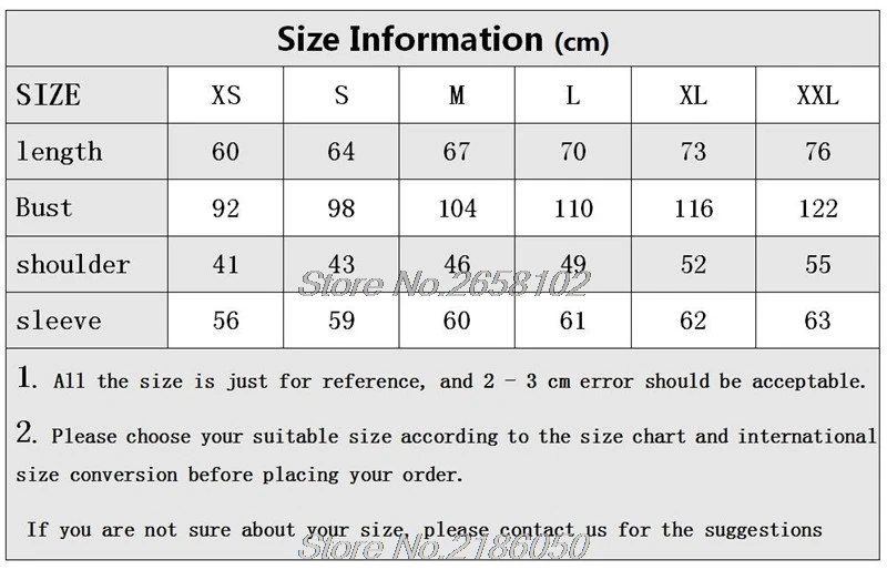 Примечание:1. Все размеры указаны только для справки, допускается погрешность в 2 - 3 см.2. Пожалуйста, выберите подходящий размер в соответствии с размером таблицы и международным преобразованием размеров перед размещением заказа.Если вы не уверены в своем размере, свяжитесь с нами для его уточнения.