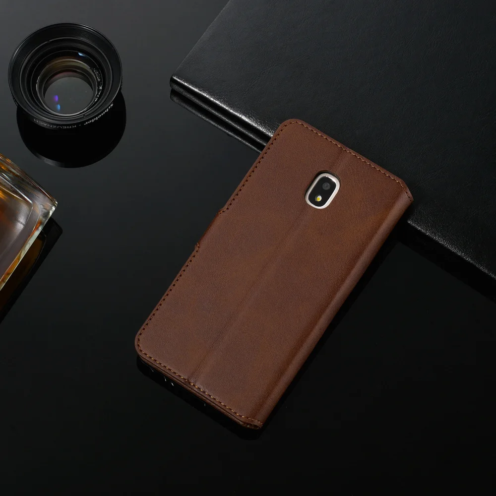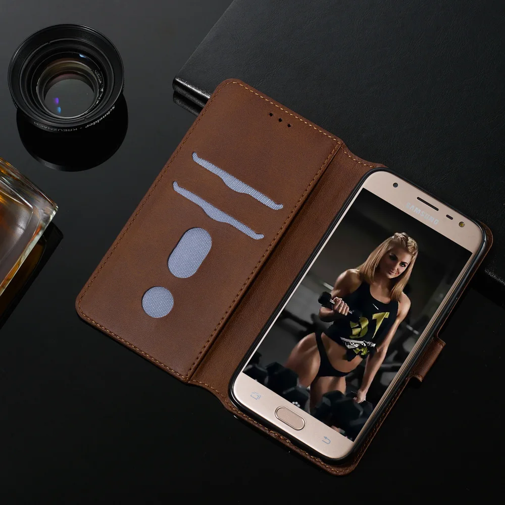 Простой чехол из искусственной кожи для Samsung J5, J3 2017, J4, J6 Plus, J8 2018, J1 2016, J7 Prime, откидной ретро-Чехол-книжка с держателем и подставкой