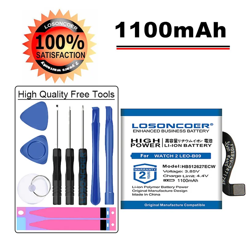 Аккумулятор LOSONCOER 0 Cycle, 100% новый аккумулятор HB512627ECW для HUAWEI Watch 2 Pro, 4G, для часов, с высокой емкостью, с функцией зарядки, с функцией зарядки от батареи, для HUAWEI Watch 2 Pro, 4G, с функцией быстрой зарядки, с функцией зарядки от двигателя на расстоянии до 14 ГБ.