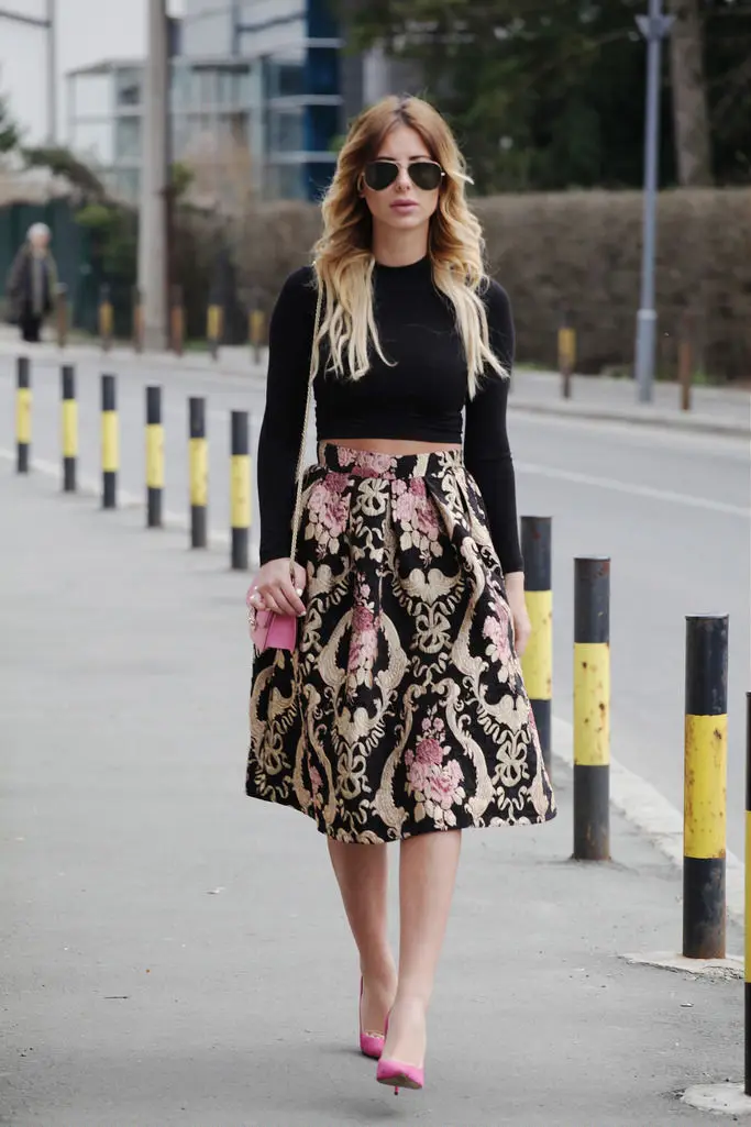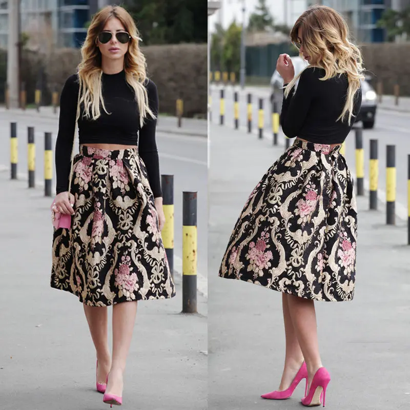 Юбка женская плиссированная средней длины с высокой талией и цветочным принтом