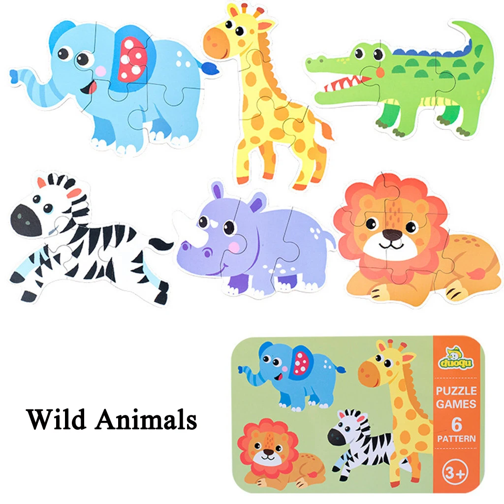 Детские Обучающие пазлы, игрушки, мультяшное движение, животные, Обучающие пазлы, игрушки для малышей, карточки в железной коробке, обучающая игра ZXH
