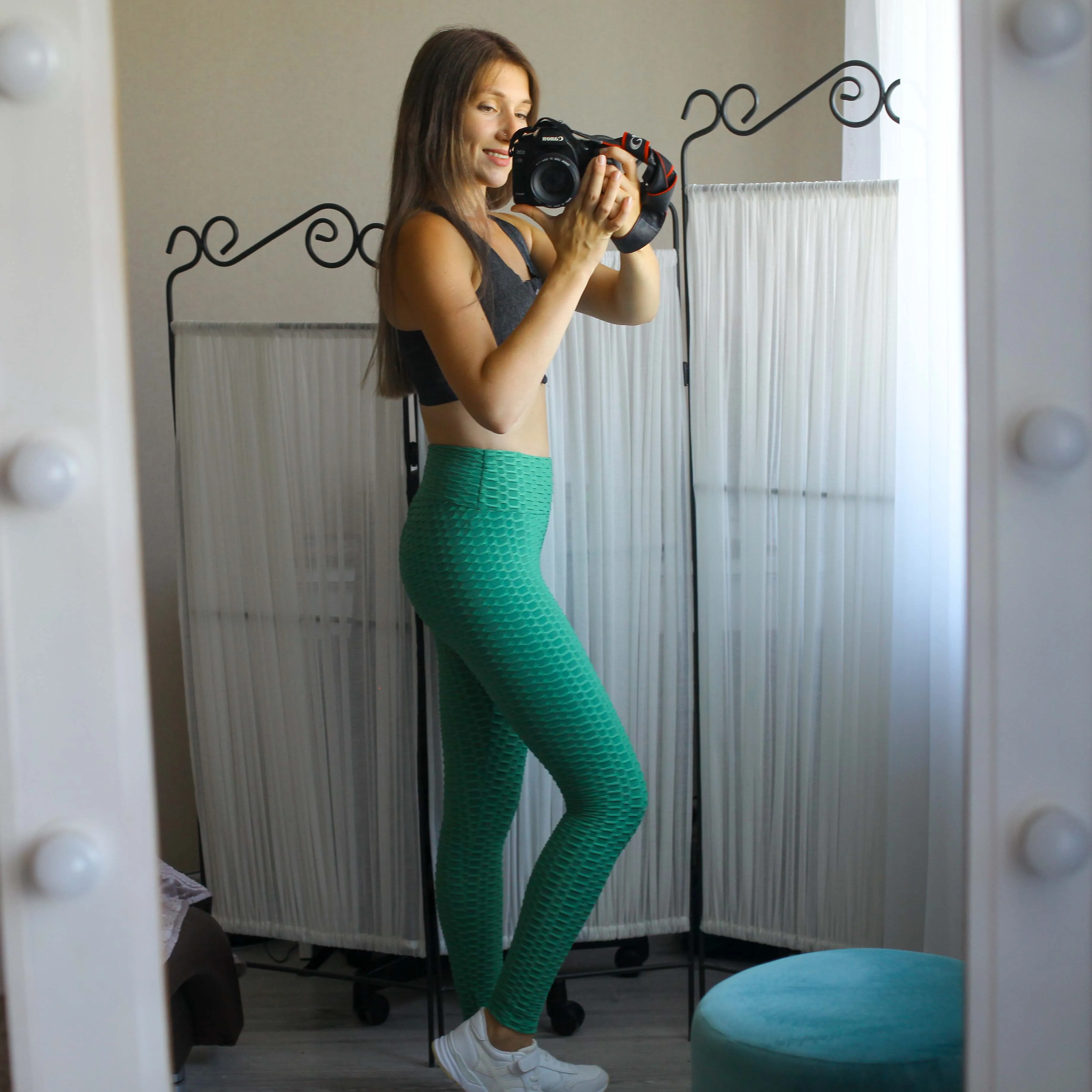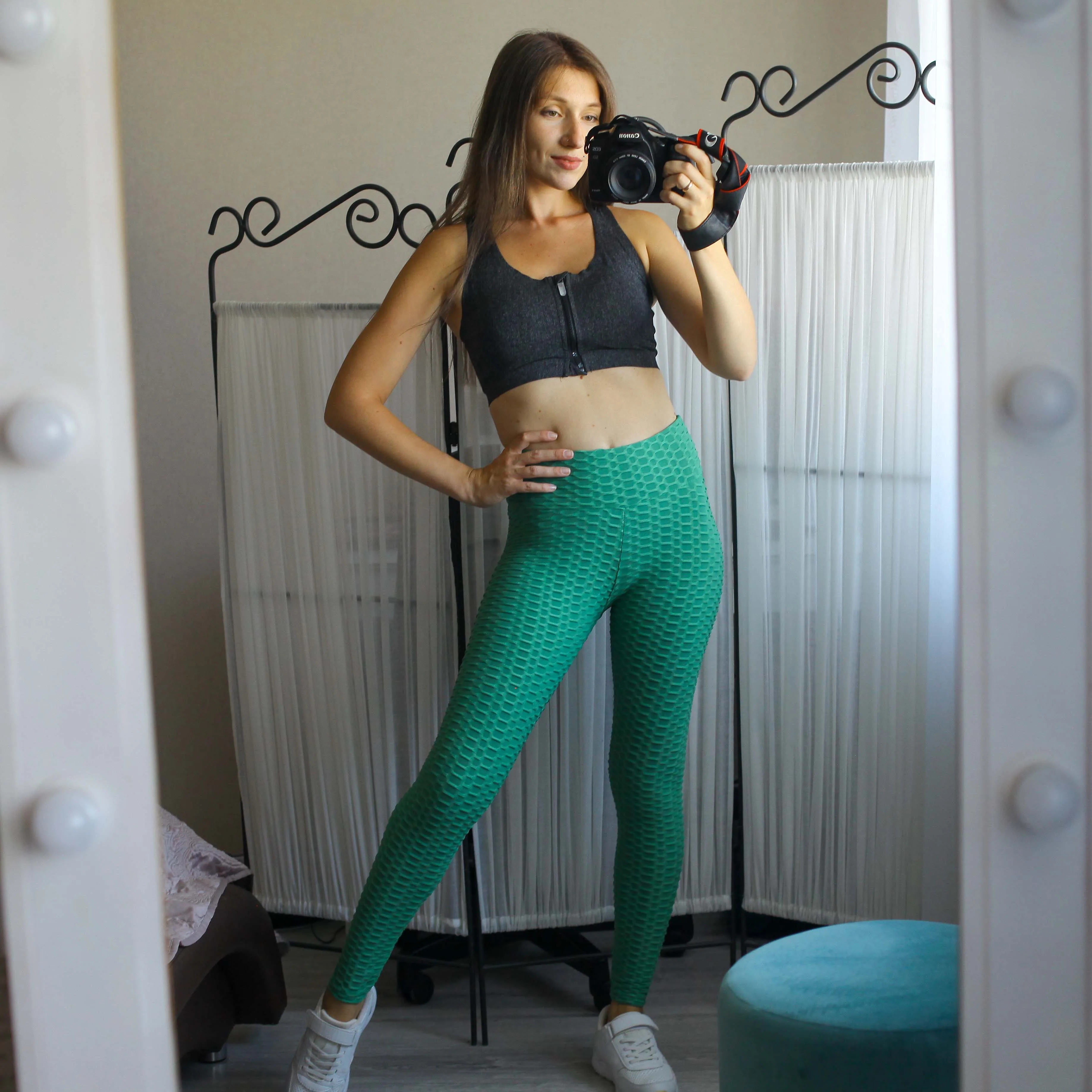 Леггинсы. Размер М подошел на параметры 81-65-89. Леггинсы хорошо по длине, нигде не давят, сели комфортно. Выполнены леггинсы из фактурной ткани. Ткань эластичная, хорошо тянется, в данном цвете не просвечивает. Сзади ткань в районе ягодиц присборена. Посадка высокая. Качество хорошее, лишних ниток не было.