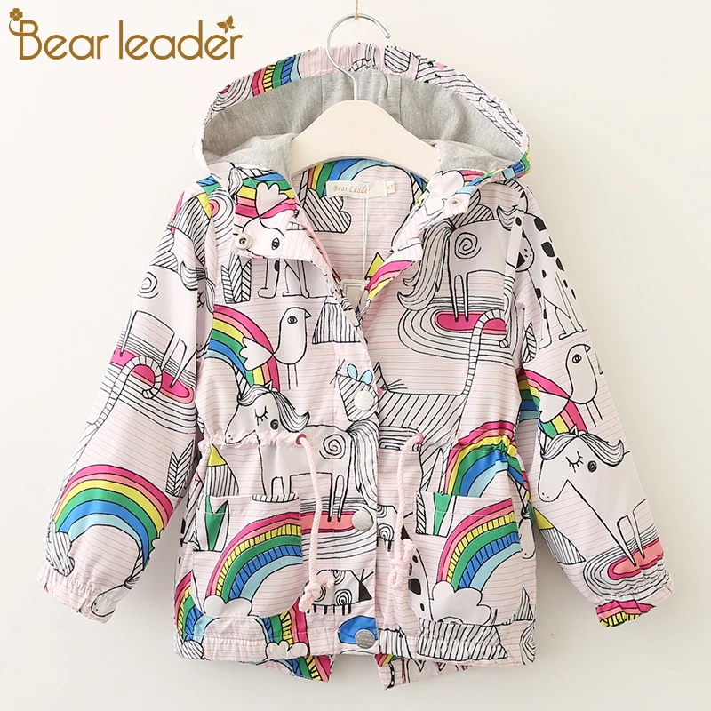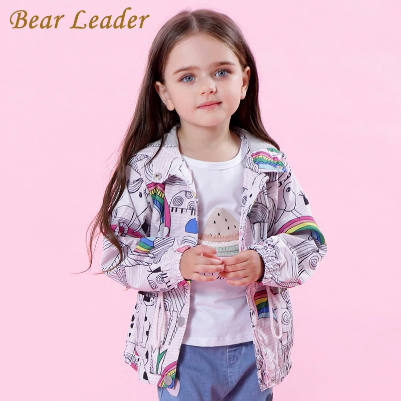 Bear Leaderпальто для девочек новые весенние детские куртки для девочек модные пальто с героями мультфильмов одежда с капюшоном и длинными рукавами одежда для детей от 3 до 7 лет