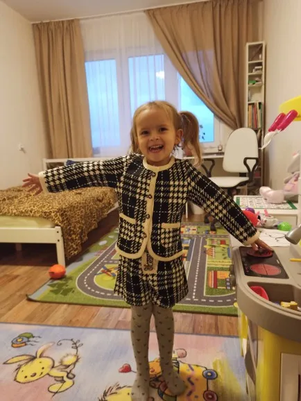 Продавец прислал мне размер 3T, а не 4T. Качество костюма неплохое, выглядит тоже аккуратно. Единственное, пуговицы плохо пришиты и болтаются, но перешить не вижу проблем. Хотела урегулировать проблему с неправильным размером с продавцом напрямую, но он отказался что-либо делать, пришлось открывать спор. Так продавец даже там умудрился максимально долго затягивать решение и отпирался до последнего от запрошенного частичного возврата денег. В итоге спор я выиграла, но неприятный осадок остался. Поэтому 3 балла ставлю не костюму, а продавцу.