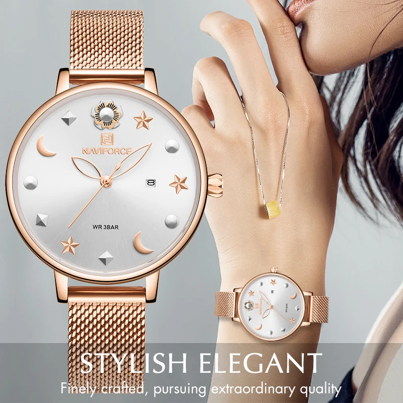 Новинка, NAVIFORCE, женские часы, топ, роскошный бренд, женская мода, на каждый день, нержавеющая сталь, сетка, наручные часы, подарок для девочек, Relogio Feminino