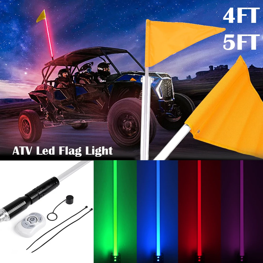 Защитная антенна 4 фута, 5 футов, светодиодная подсветка RGB легкий флаг для песочных багги, UTV, Polaris, вездехода, грузовика, джипа, песочные направляющие, пульт дистанционного управления