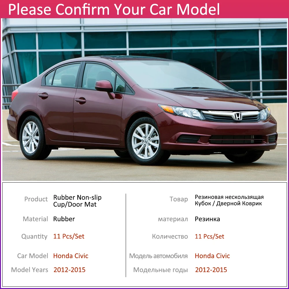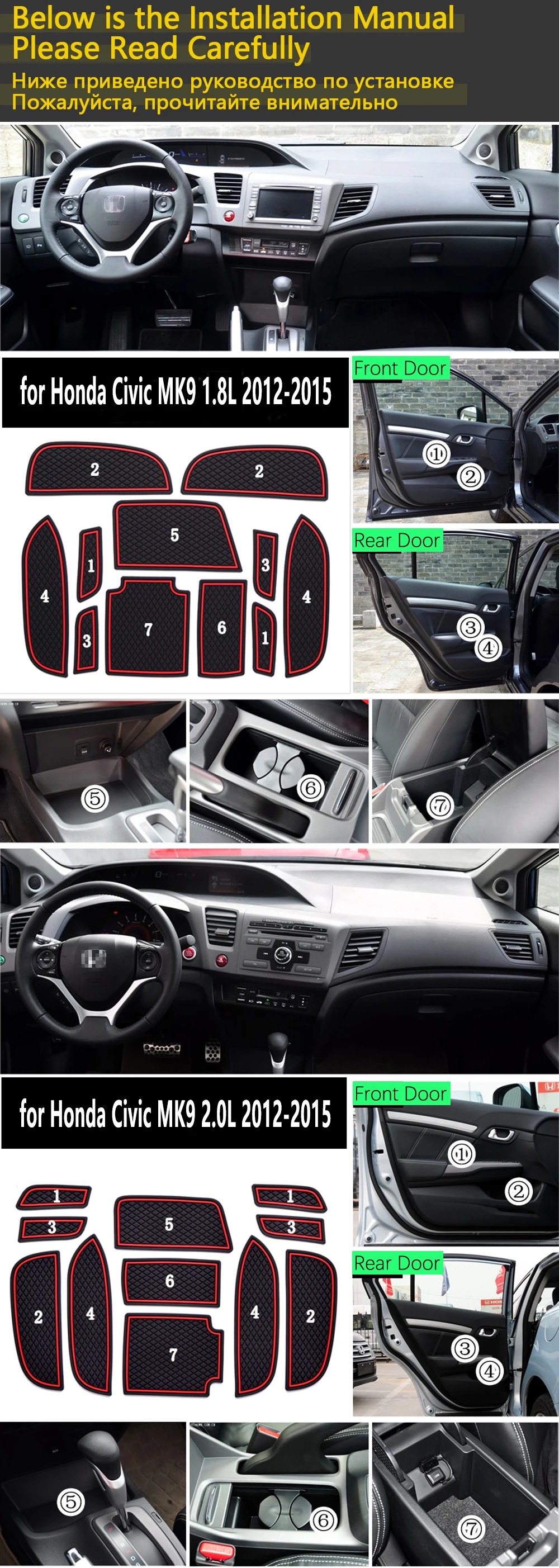 Противоскользящий резиновый коврик для чашки, для Honda Civic MK9 1.8L 2.0L 2012 2015, аксессуары, коврик для телефона 2013 2014