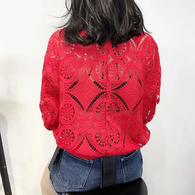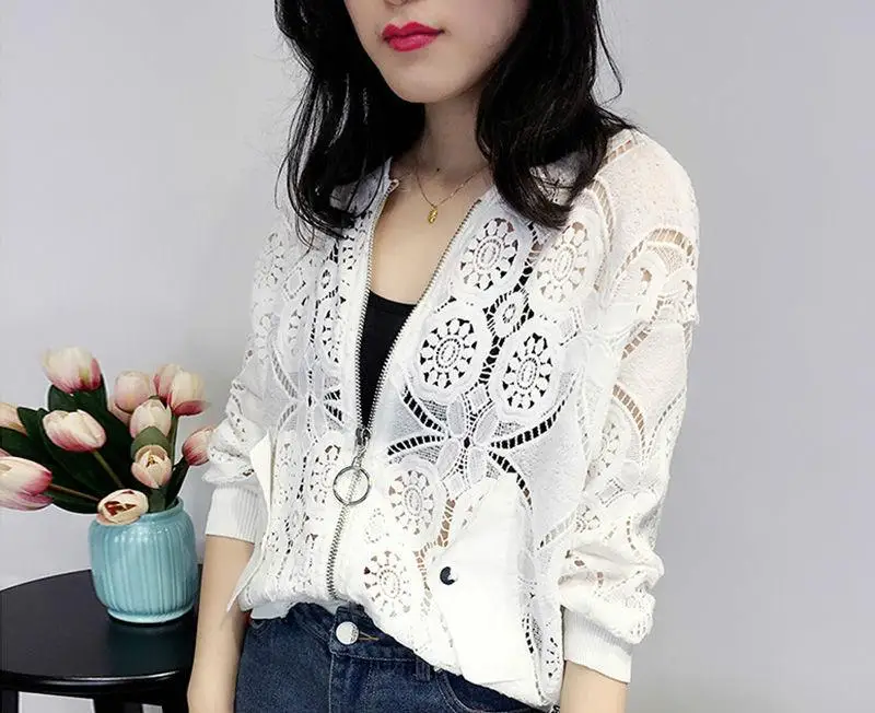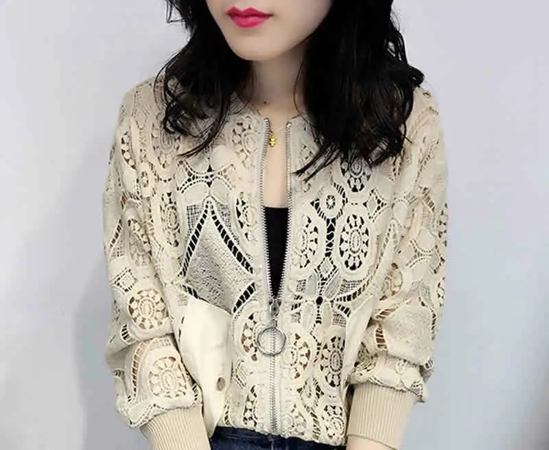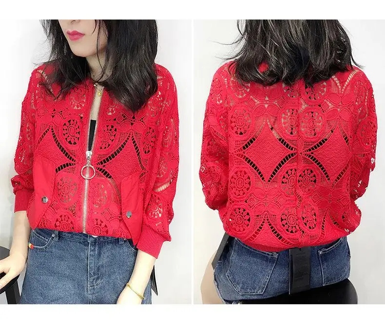 Женская Повседневная куртка-бомбер, Женская кружевная куртка с цвет...