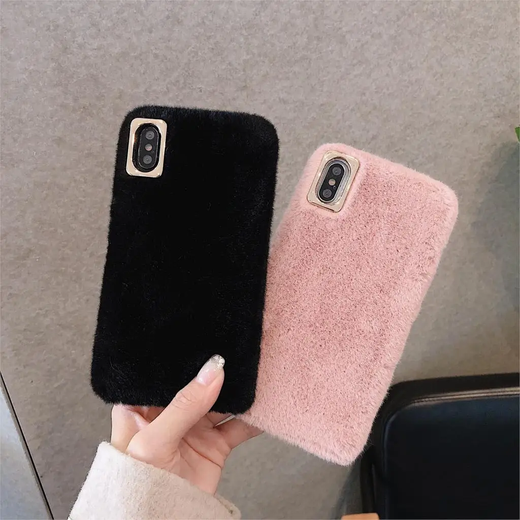 Простой Меховой чехол для iphone 7 8 Plus X XS Max XR iphone 5,8 6,...