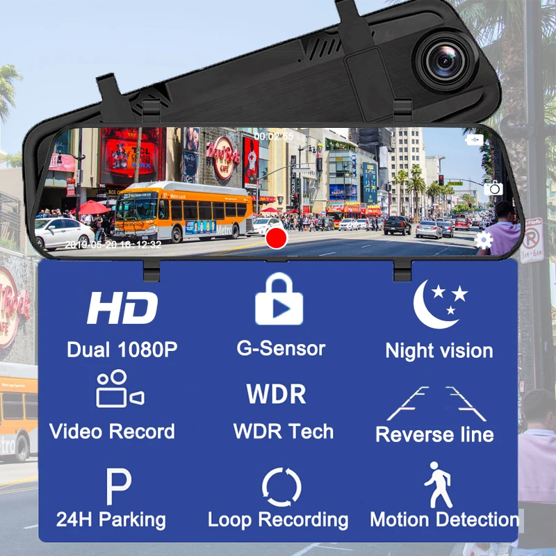 Видеорегистратор-зеркало заднего вида, 1080P, 10 дюймов, сенсорный экран