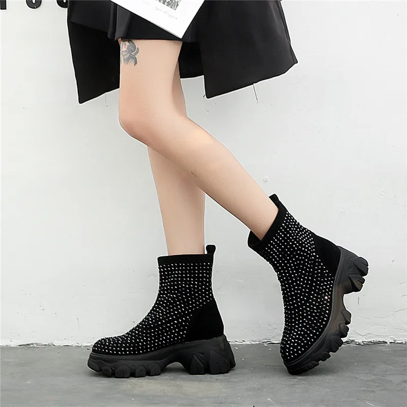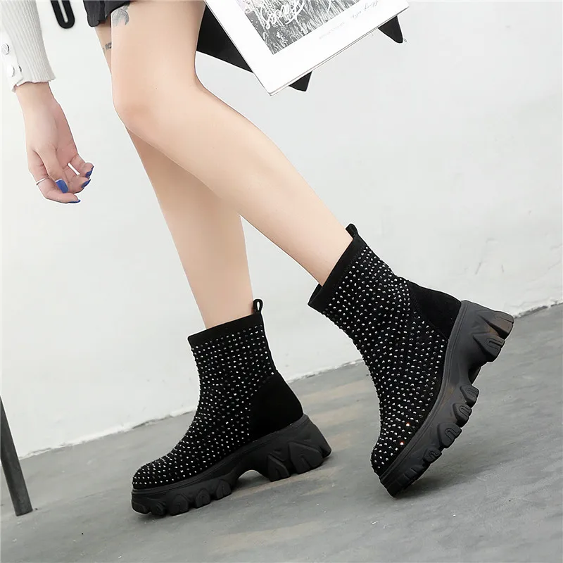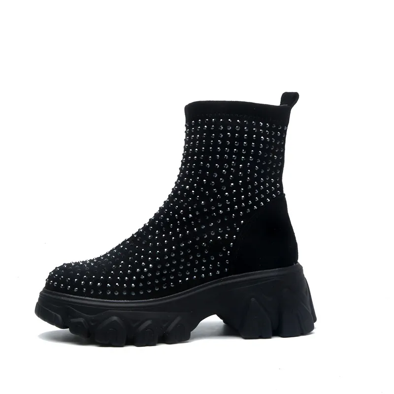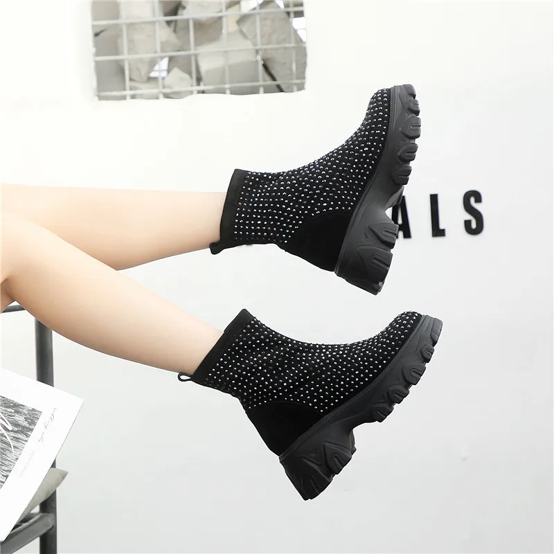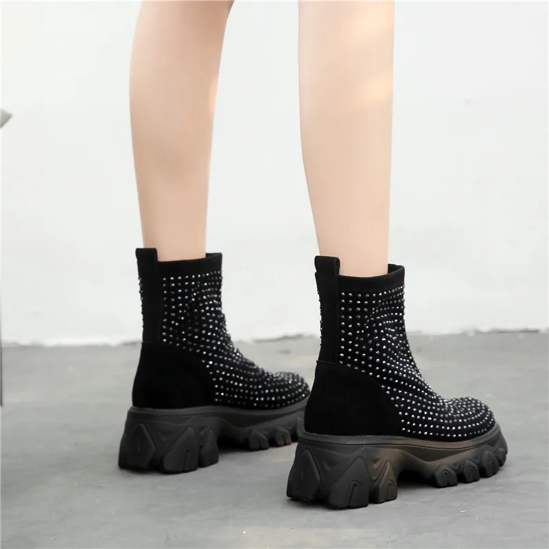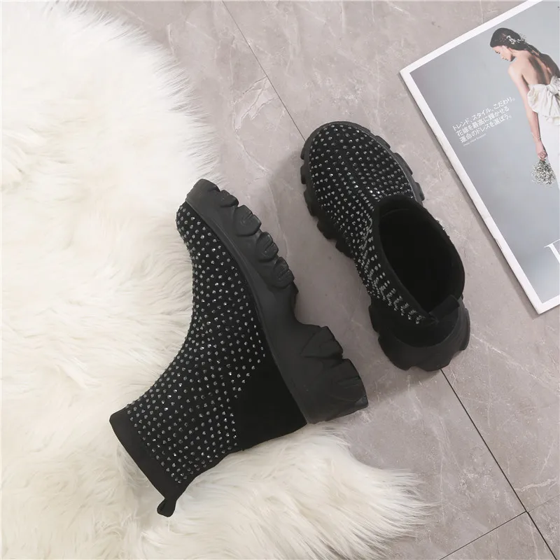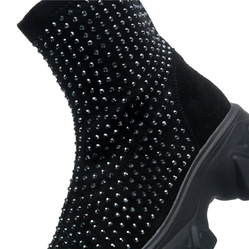 Женские ботинки на платформе RASMEUP, зимние ботинки со стразами, 2021, модные, тянущиеся, теплые, на толстой подошве, большого размера