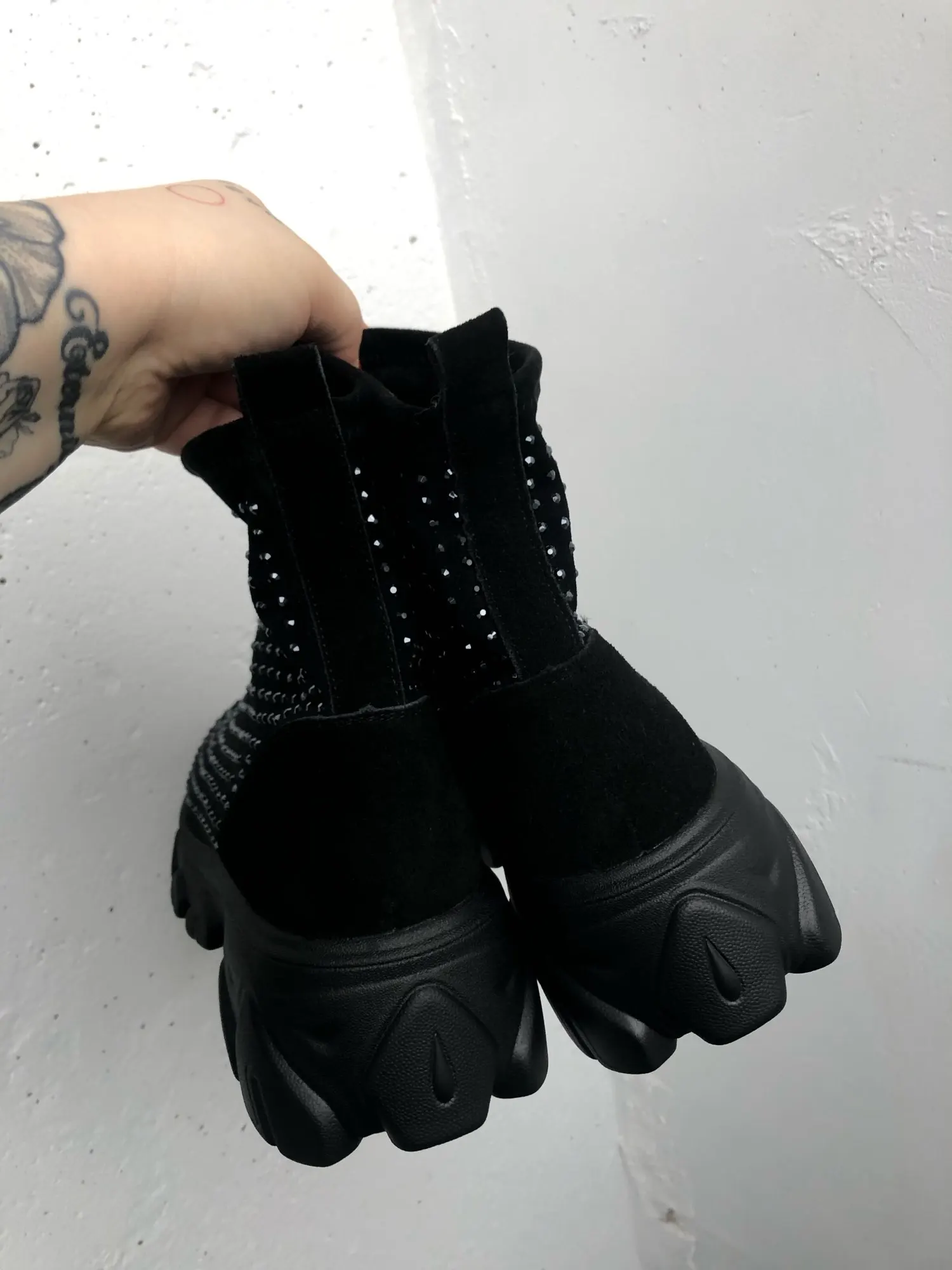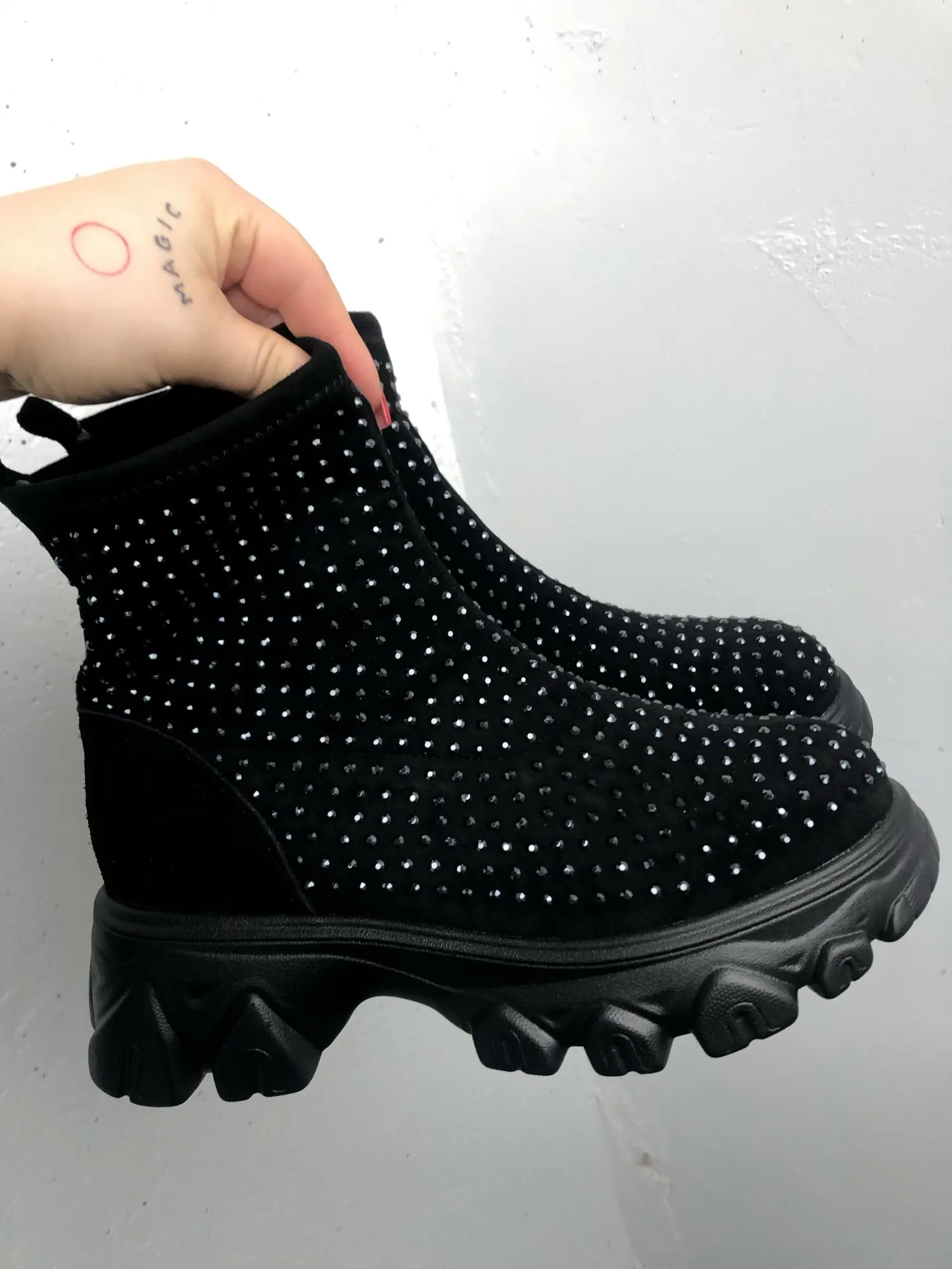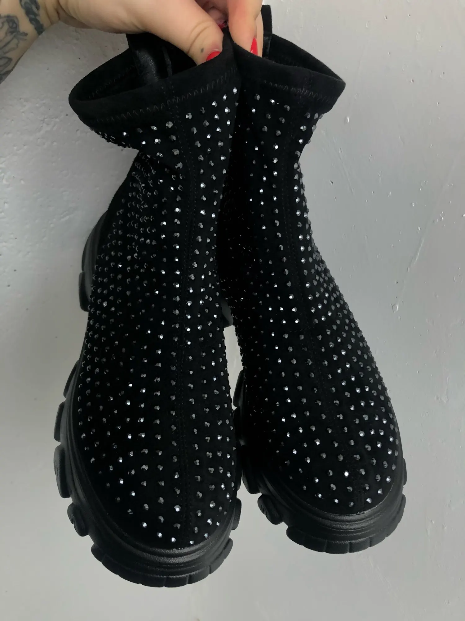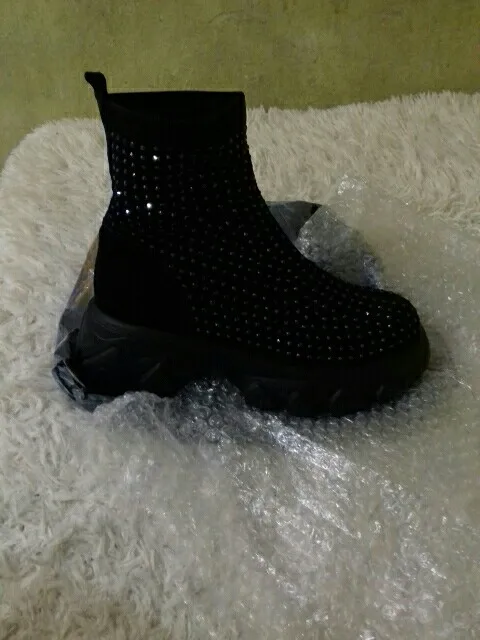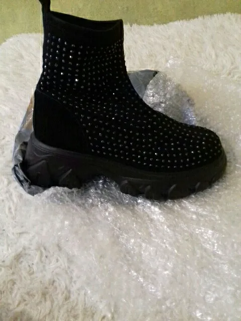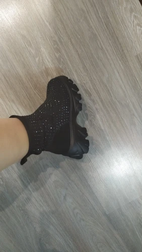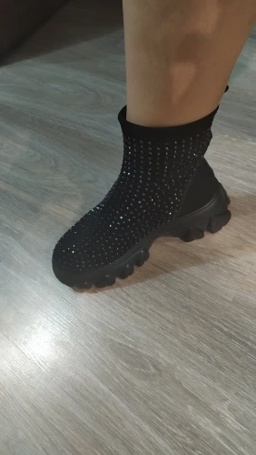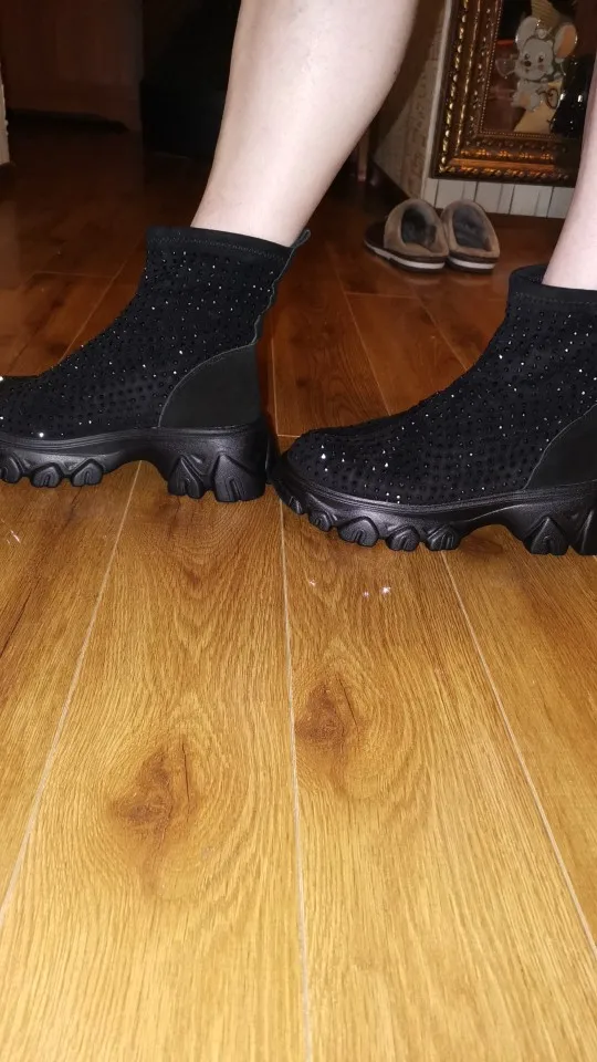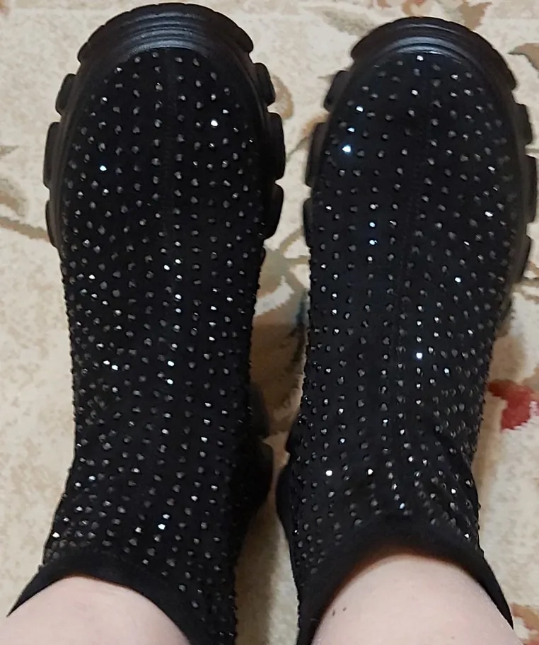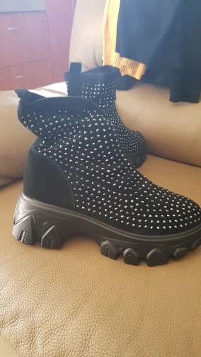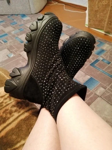 боты огонь....точно как в описании...стразы переливаются.... на ноге сидят отлично... на свой 41 брала 42)))) нога широкая и подъём высокий, сели как влитые.... очень лëгкие... внутри есть мех (немного, но есть).... доставка очень быстрая (2 недели).... рекомендую всем у кого "проблемные " ноги ....